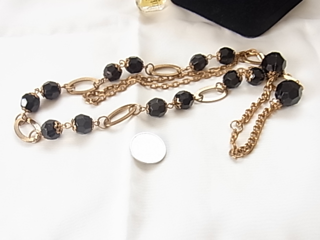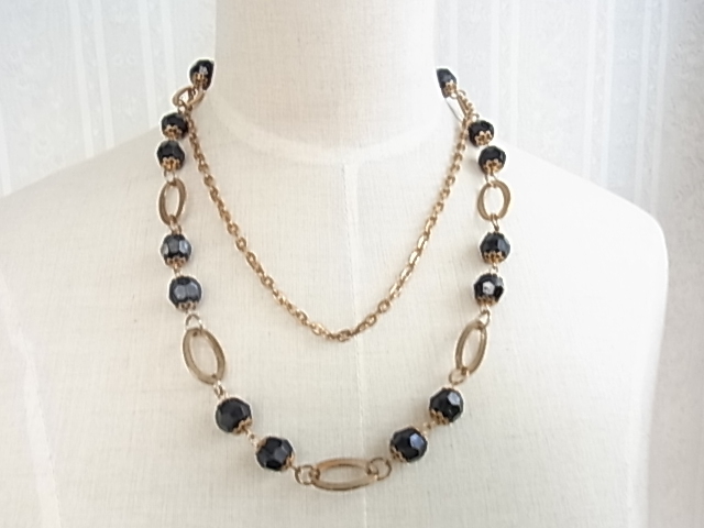 ☆アジアン調 黒のカッティングが綺麗なビーズストーンにゴールドカラーのコンビデザイン 2連調のネックレス