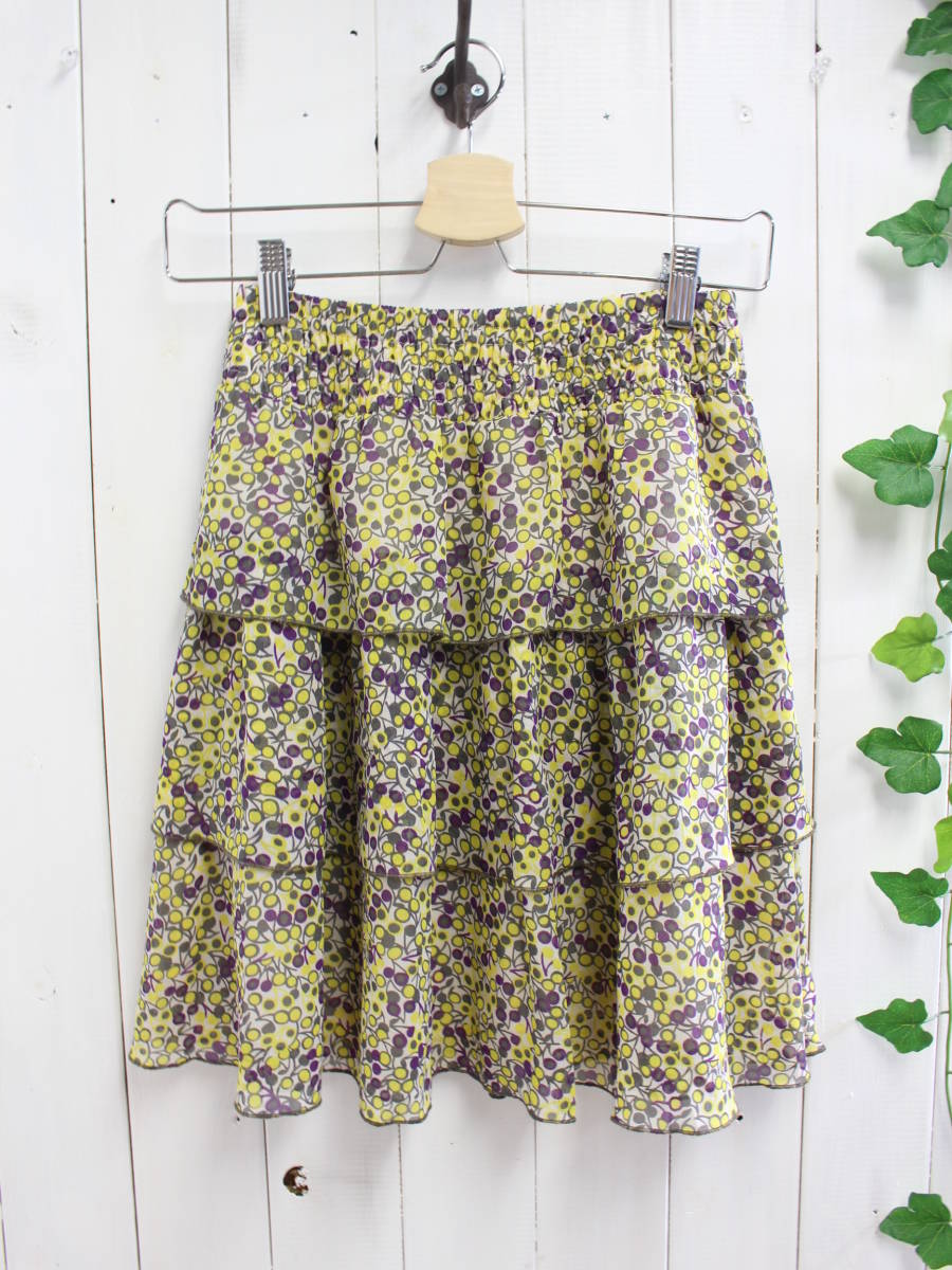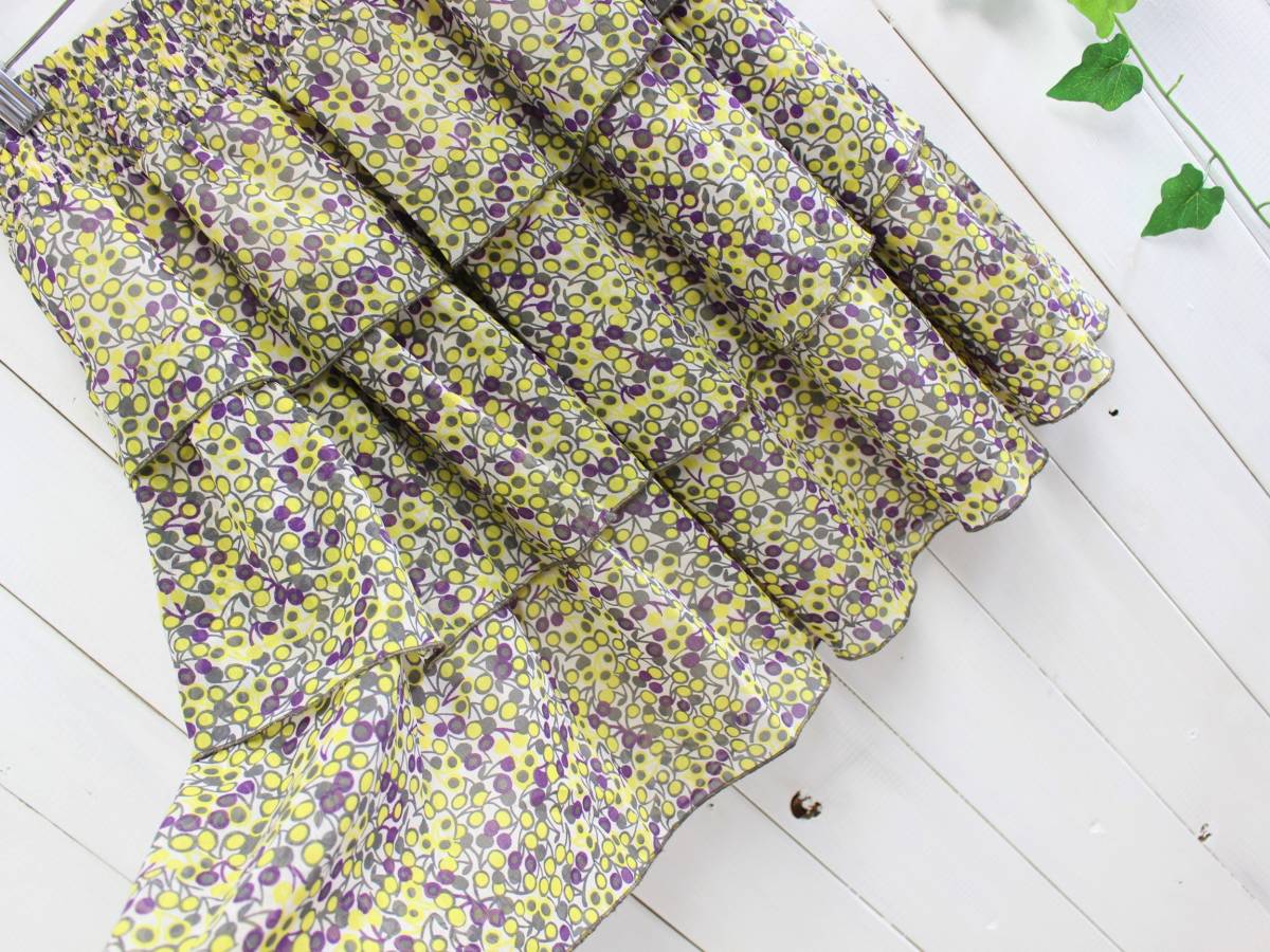 美品*ロペピクニックROPE PICNIC*3段ティアード 総柄 シフォンスカート(38)a26