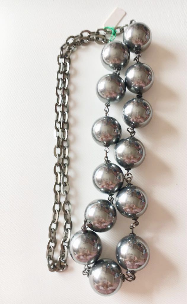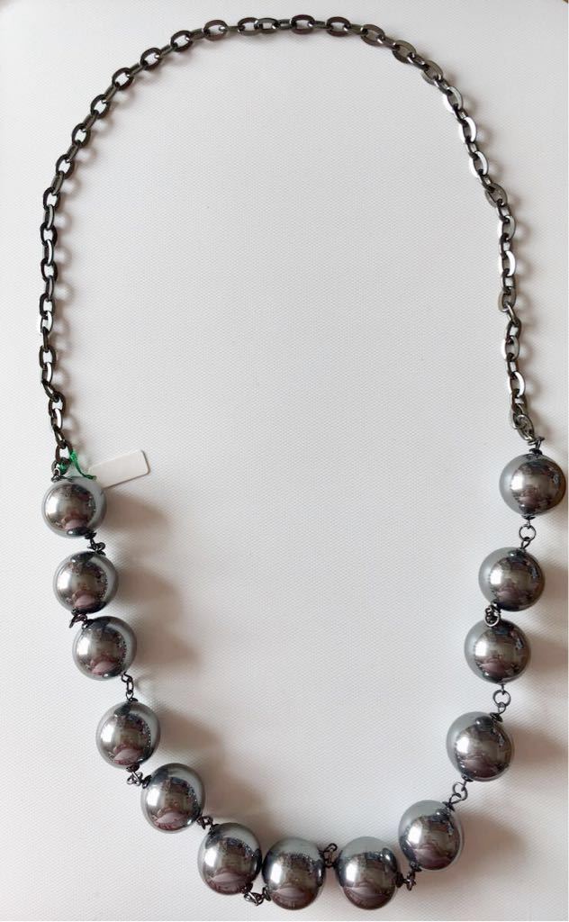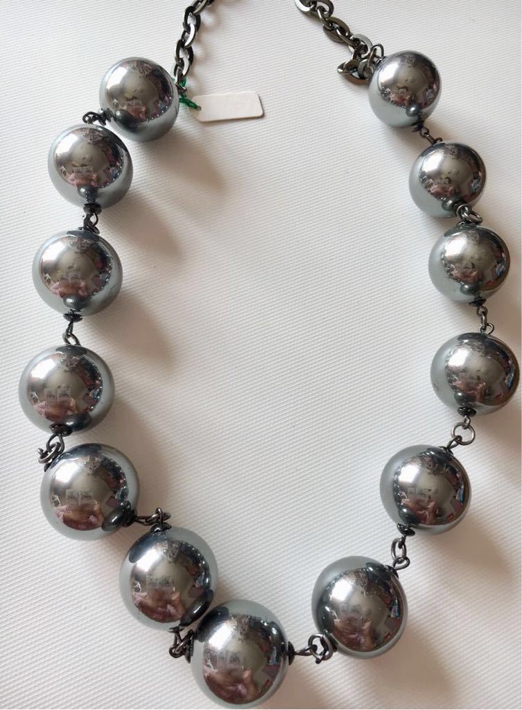 こちらは、メタルシルバーカラー アクリルビーズ の ロングチェーンネックレス になります♪