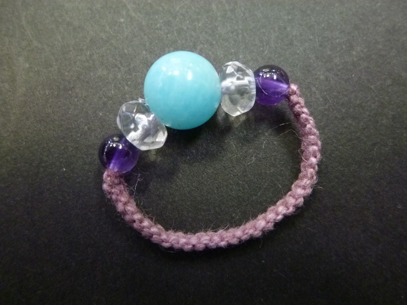 ☆アマゾナイト(ペルー産)とアメジストと水晶の高品質のマクラメ 指輪商品です。