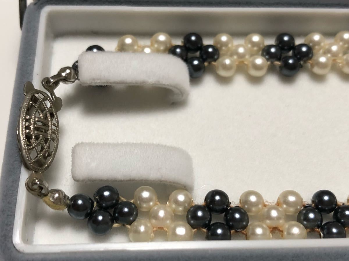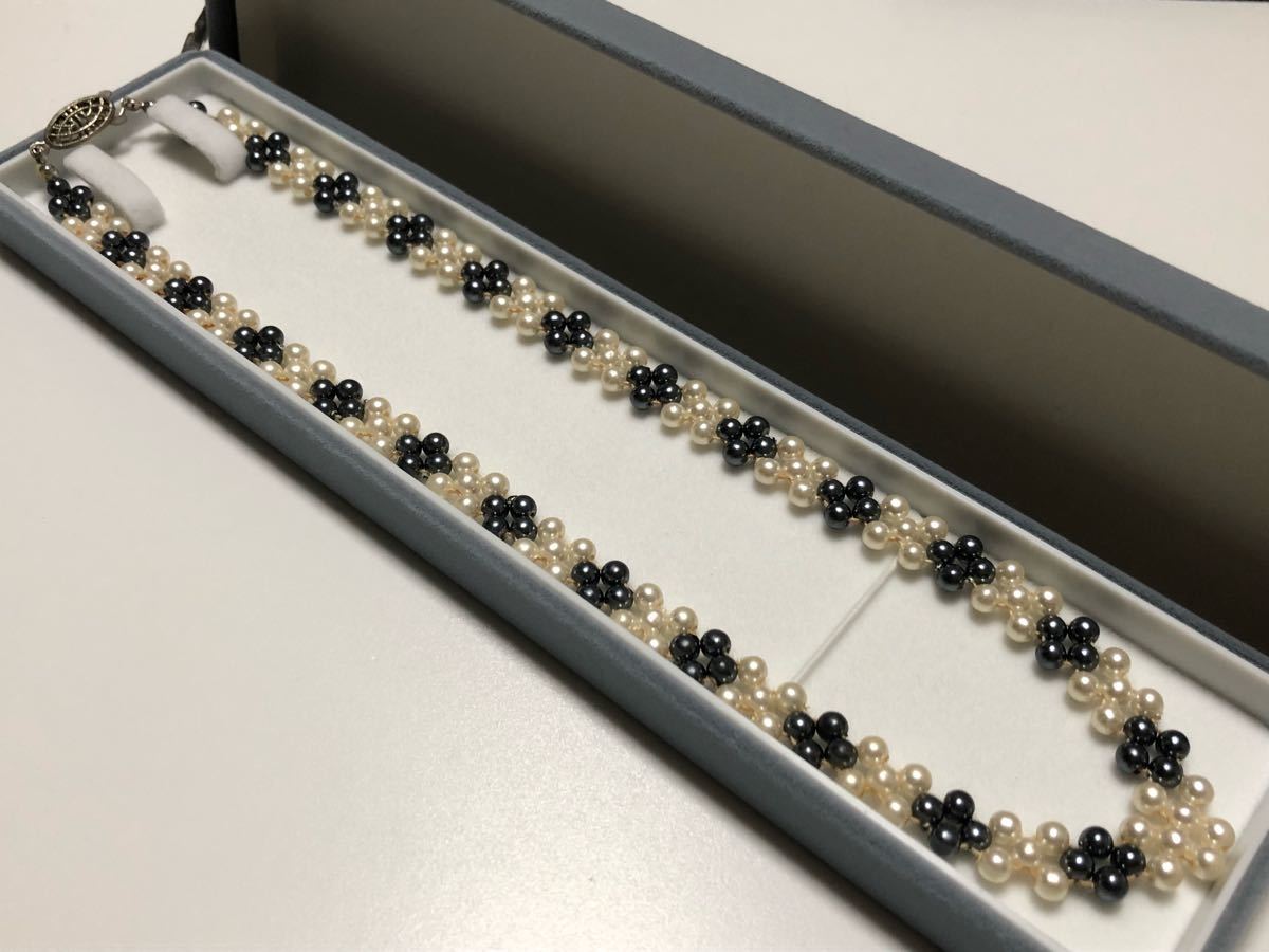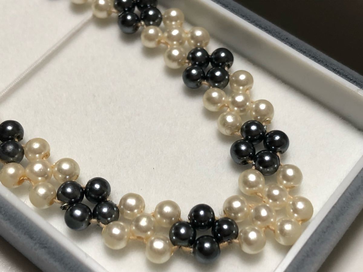 4㎜玉のフェイクパールを使用した、ツーカラーの連玉ネックレスです。