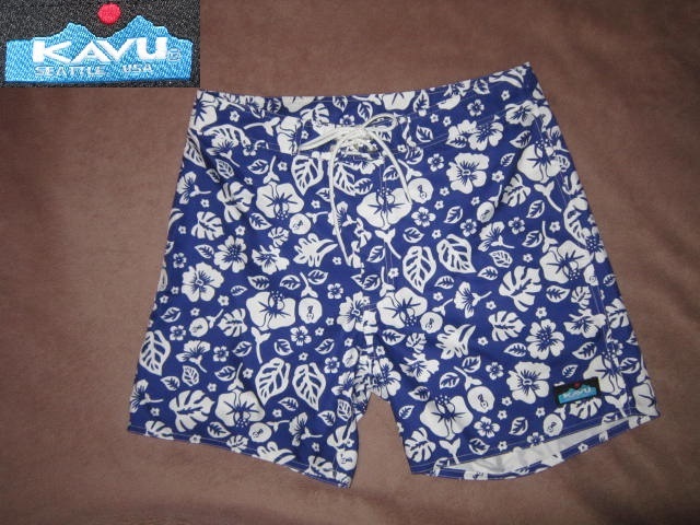 超レア! KAVU カブー ハイビスカス総柄 サーフパンツ 青 L 水着 海パン スイムパンツ SURF サーフ サーフィン