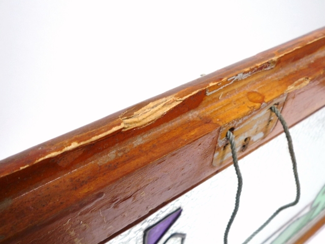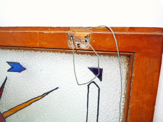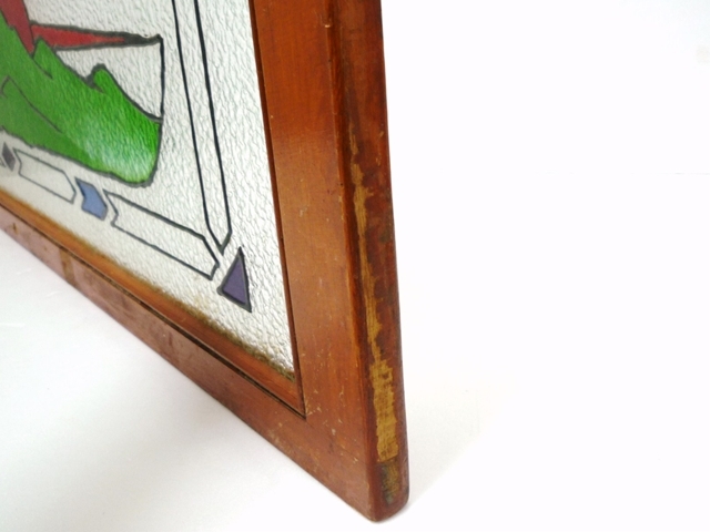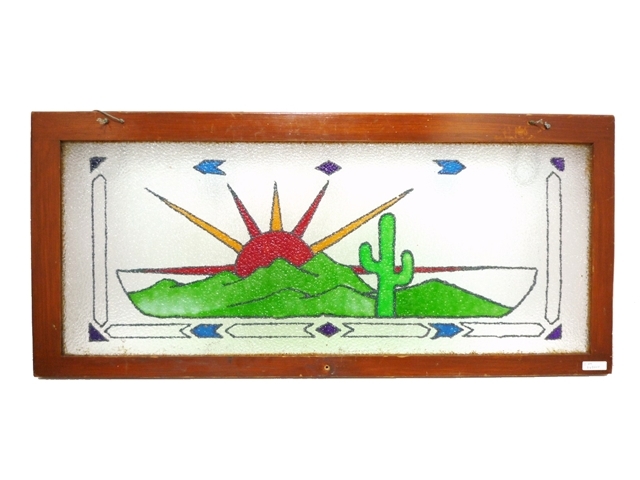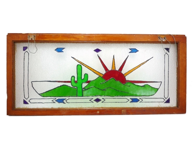 アンティーク ステンドグラス サボテン&太陽&ネイティブ柄 木製枠 ディスプレイ インテリア 建具 建材 DIY 飾り