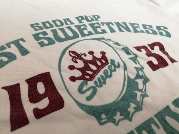 脇に縫い目の無いカットソー生地のプリントTシャツです。