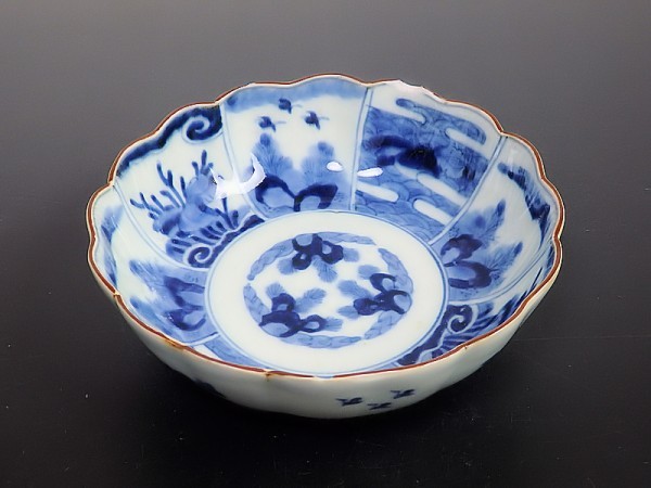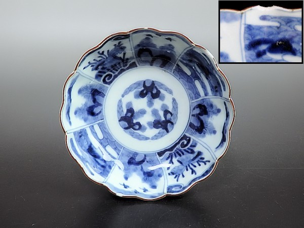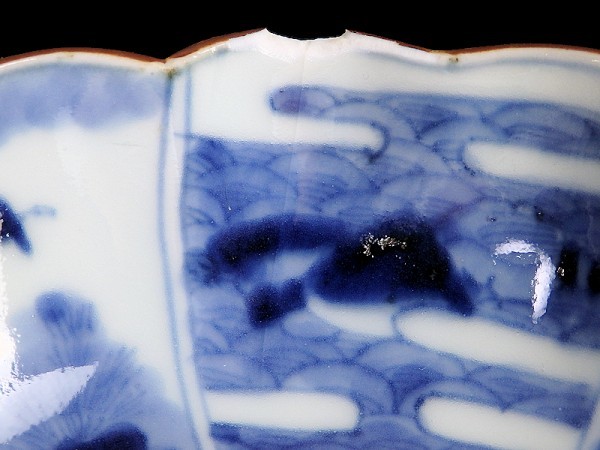 【金継材料】 305 古伊万里 染付 青海波に貝の図 膾皿