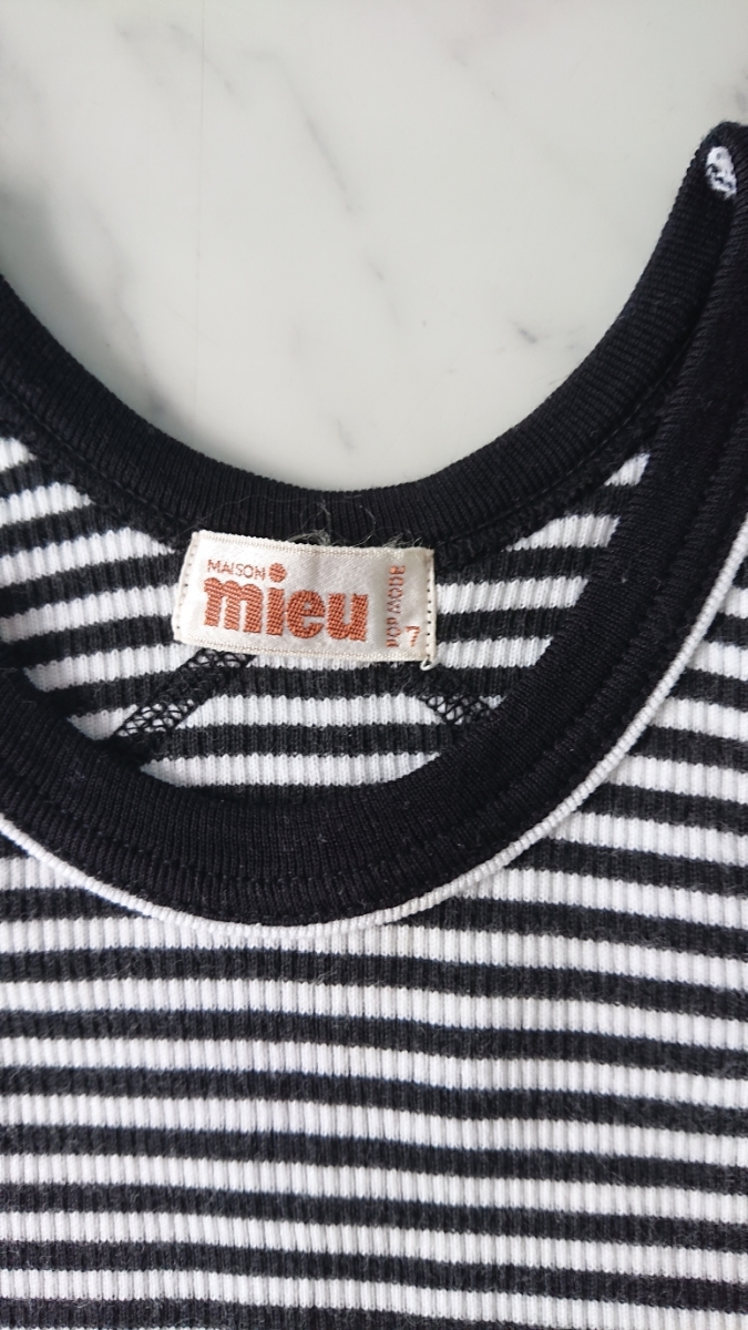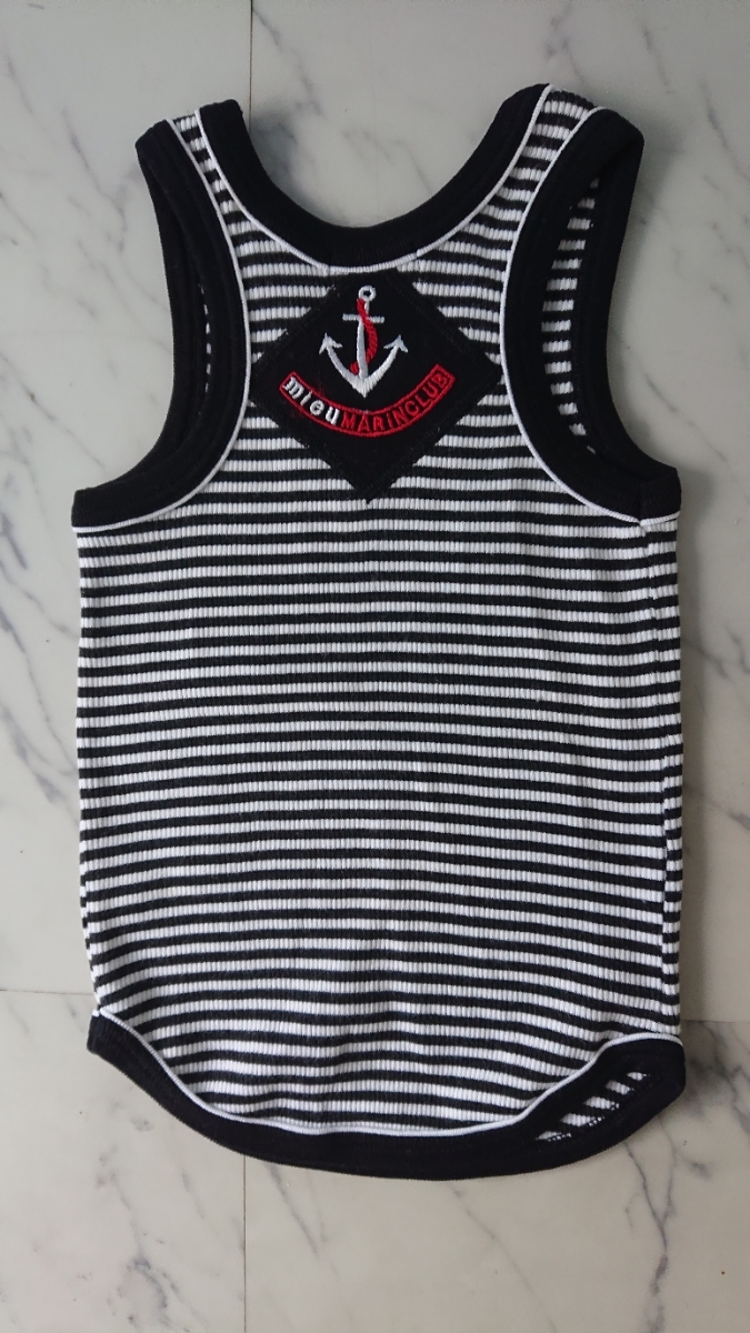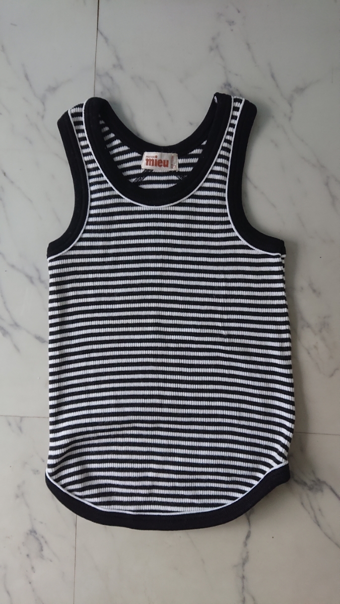 サイズ表示がないので、採寸で確認をお願いいたします。身幅は約24cm, 肩から裾までは約42cmになります。素材は綿100%です。ノークレーム、ノーリターンでお願いいたします。
