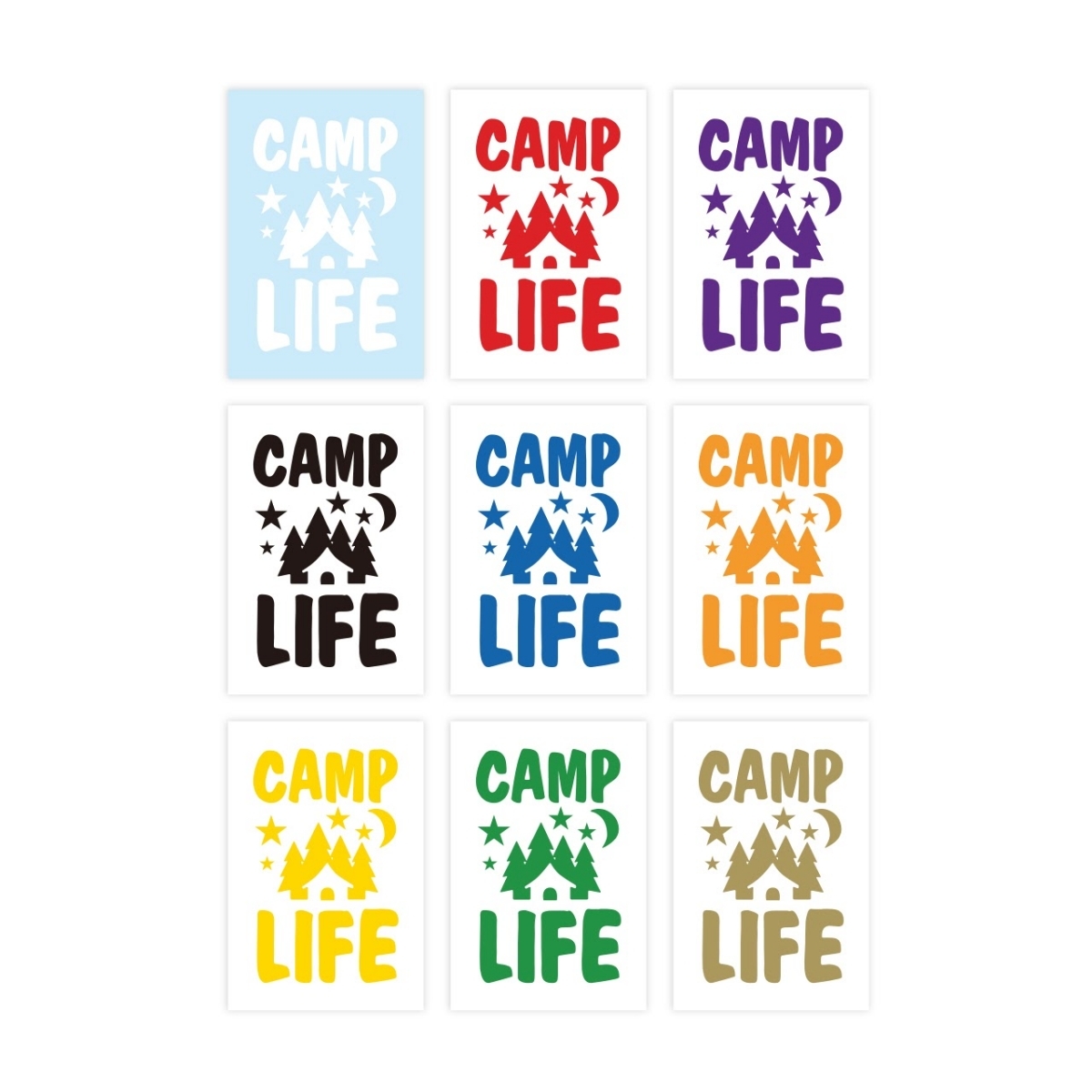 テントデザインのアウトドアステッカー、サイズ横12cm縦10cm。