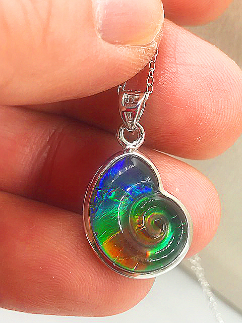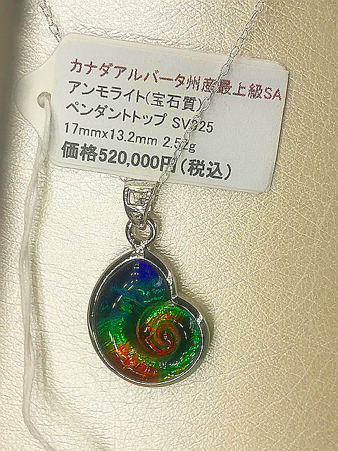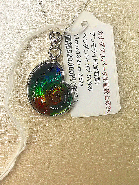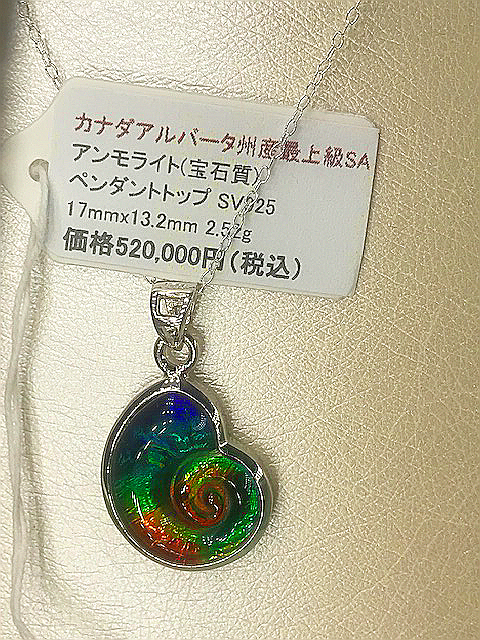 52万円のキラキラの虹の輝き、アンモライトビックペンダントトップ(チェーン付き)