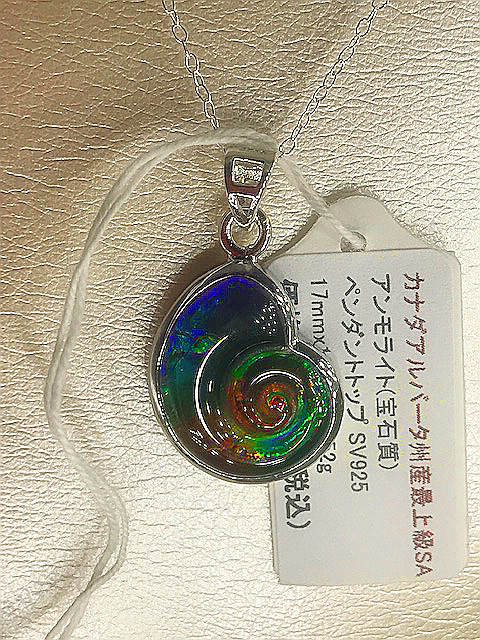 この可愛いアンモライトの形のお品物は、ルースのみでしか仕入れ不可能な為、工房でシルバー加工して、ペンダントにしました特注品です☆