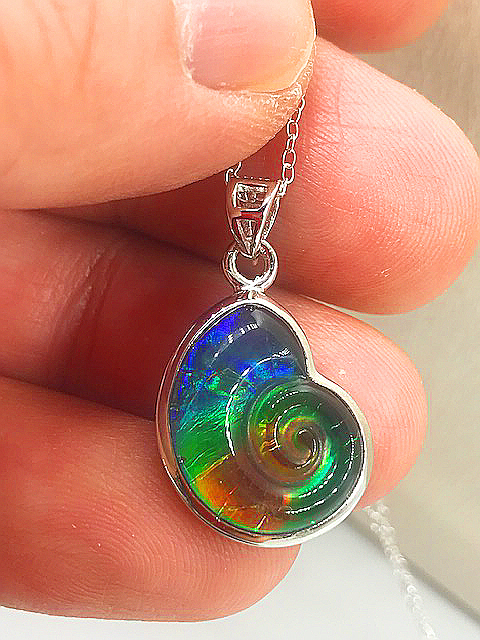 Ammolite最上級SA虹の輝き宝石質『アンモライト』ペンダントSV925チェーン付き 「幸運・才能・想像力」1月、2月誕生石 開運風水お守り小(*´▽`*)