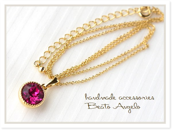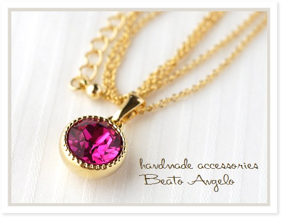 ◇◇+angelo+スワロフスキー 1088のネックレス(n-003)フューシャ G 一粒 シンプル ピンク