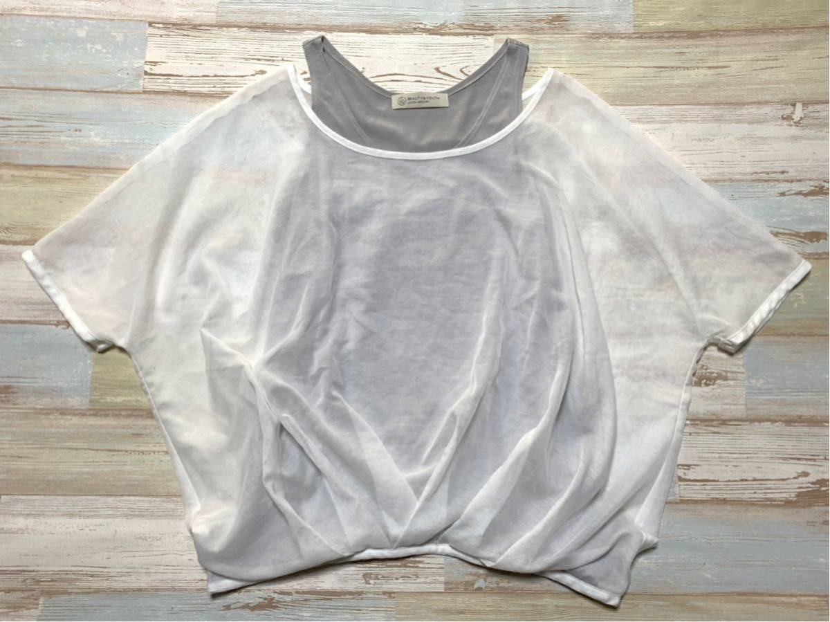 c890 UNITED ARROWS■ユナイテッドアローズ BEAUTY&YOUTH トップス■白 身幅61着丈53■ゆうパケお手軽210ゆうパックお手軽60レタパ510