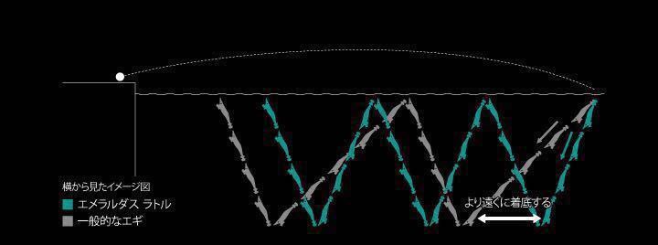 鋭いダートアクションと安定した跳ね上げを可能にする横向きラインアイ、怪しく輝いてイカにアピールするエメラルダスリアルアイ