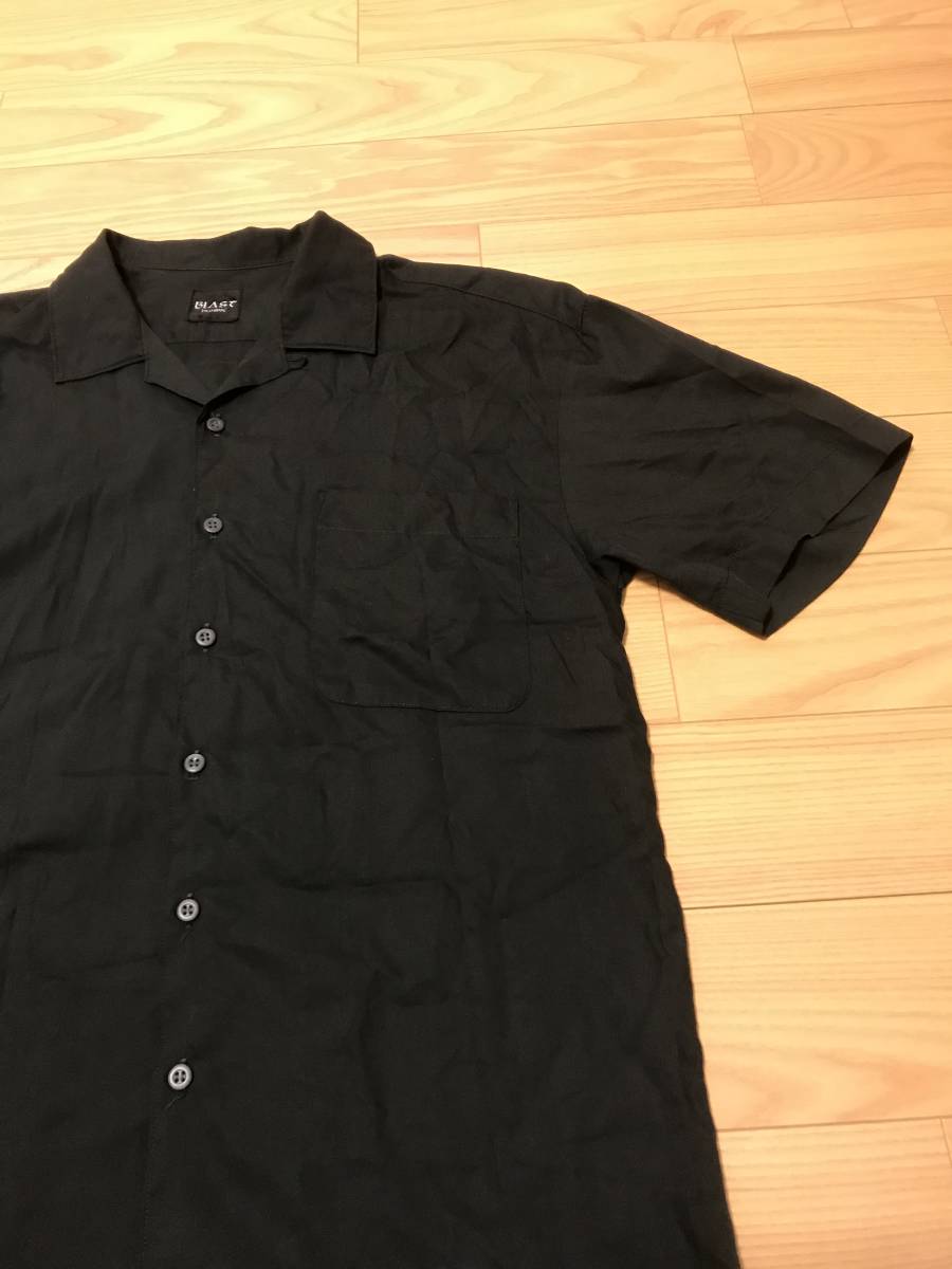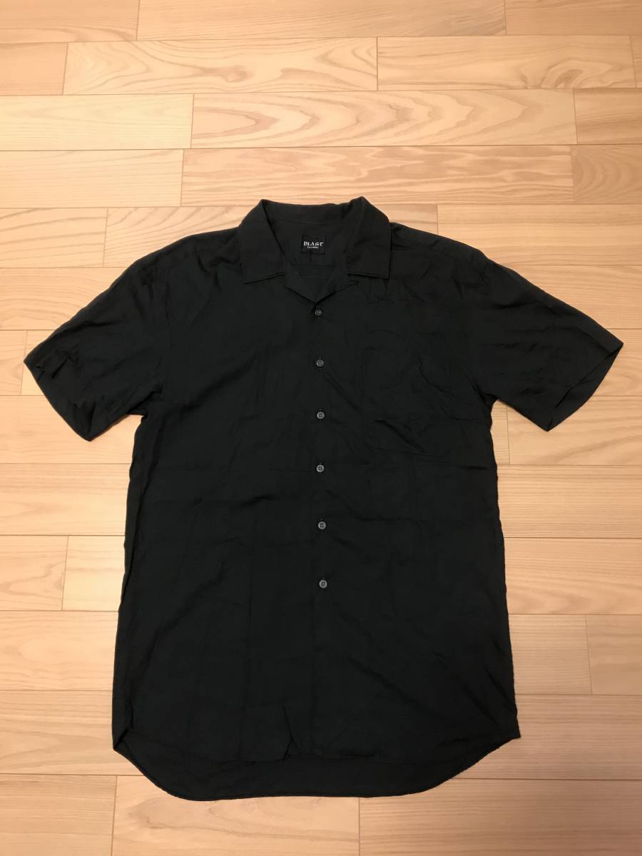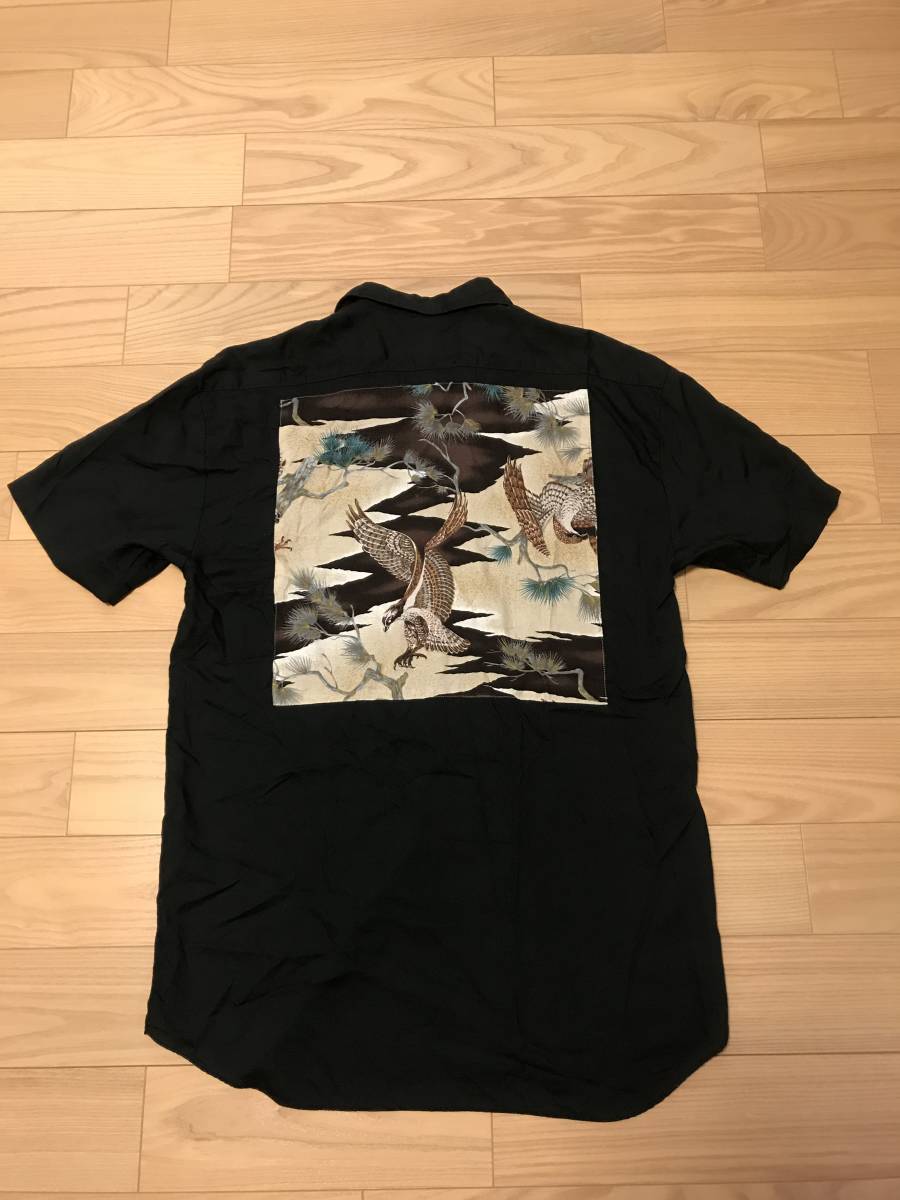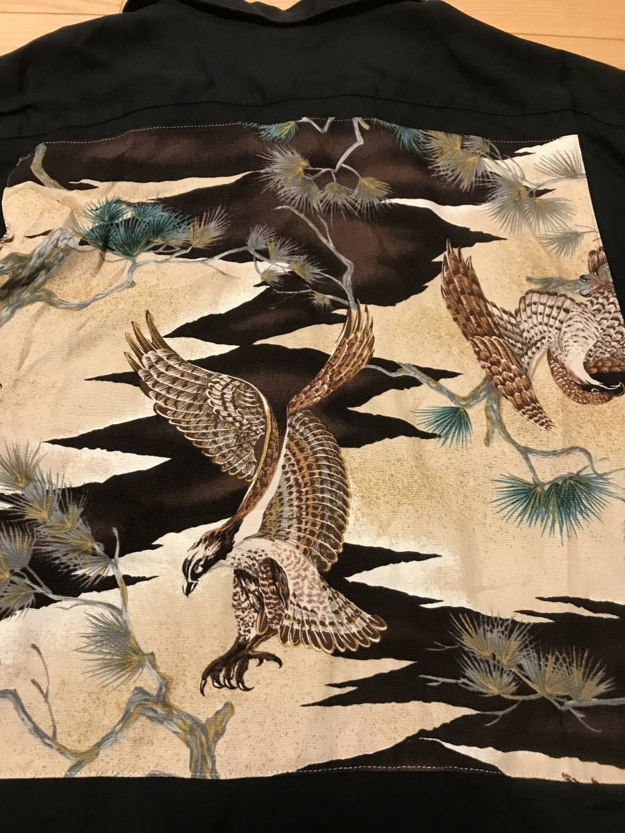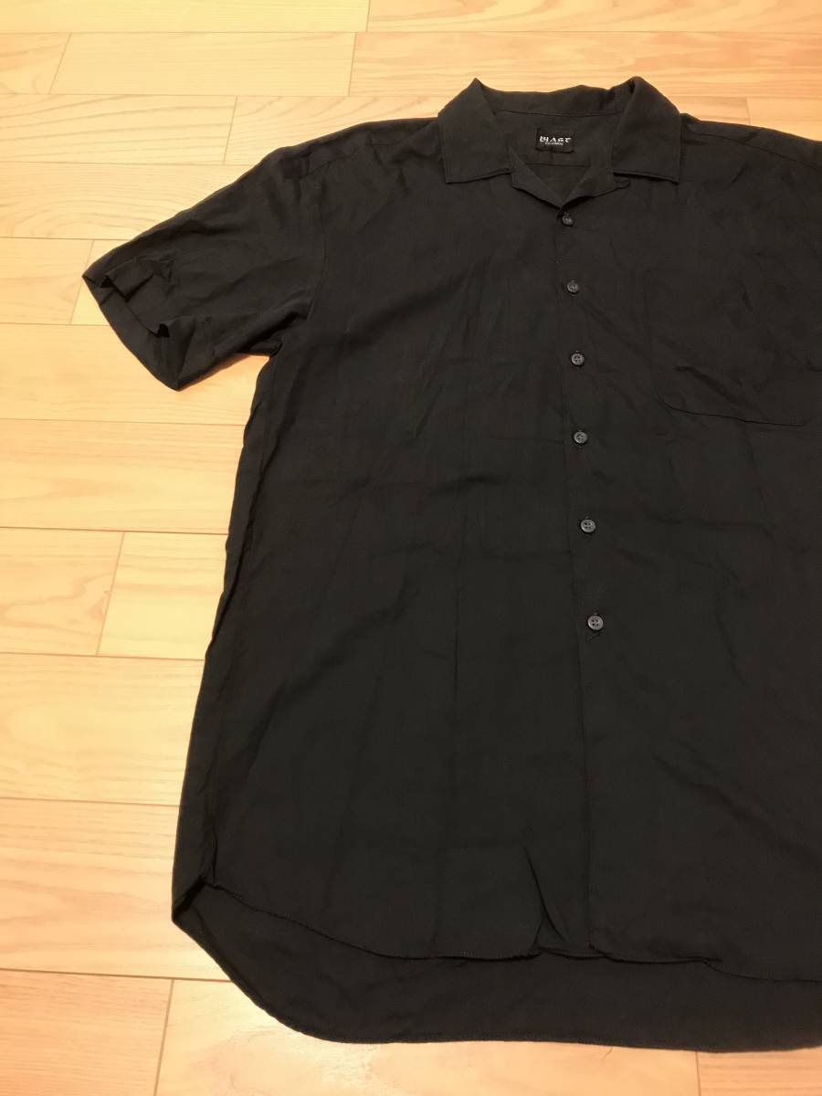 当時物 昭和 BLAST homme 背面バックスカジャン和柄 サイズF/L~並 レーヨン 半袖 開襟 オープンシャツ 黒 ロカビリー アロハ ボーリング