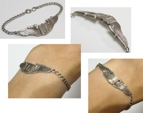 ヴィンテージ ミリタリー LIAISON PILOT SILVER ブレスです。状態は、古い物ですので、経年による擦れや薄汚れはありますが、ビンテージの雰囲気ある物です。アメリカで購入しました。裏に、STERLINGの印があります。重さは10g程です。年代物の風格とレトロ感ある珍しい物です。全体の長さ 17cm程、最大幅(縦) 1.4cm程です。ビンテージ物とご理解頂いて、ノークレーム・ノーリターンでお願い致します。