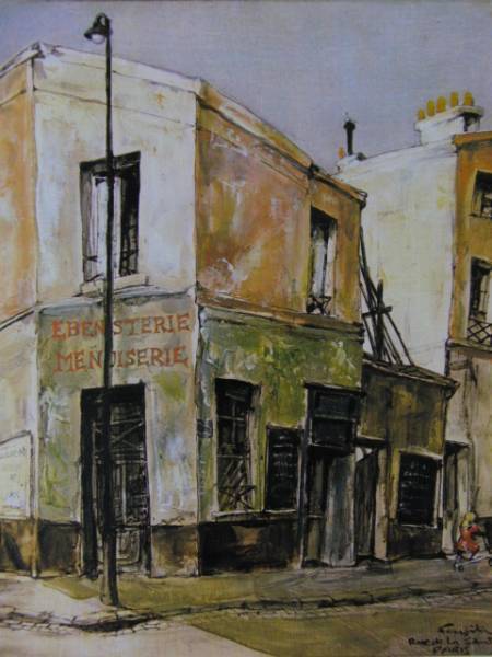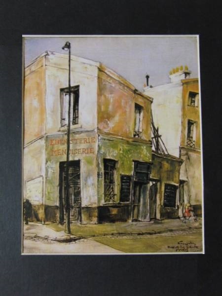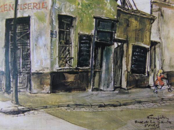 藤田嗣治、ラ・サンテ通り,パリ、超希少額装用画、新品額装付、iafa