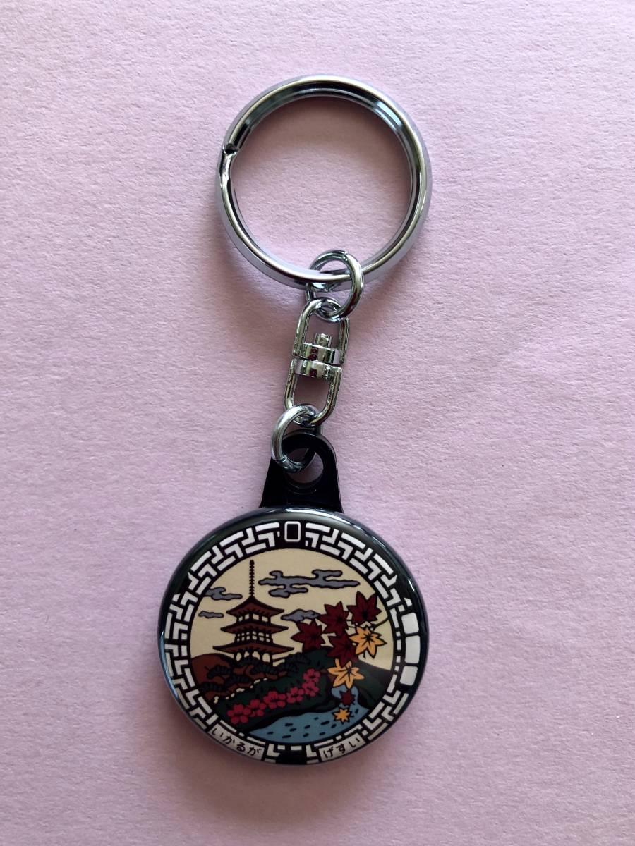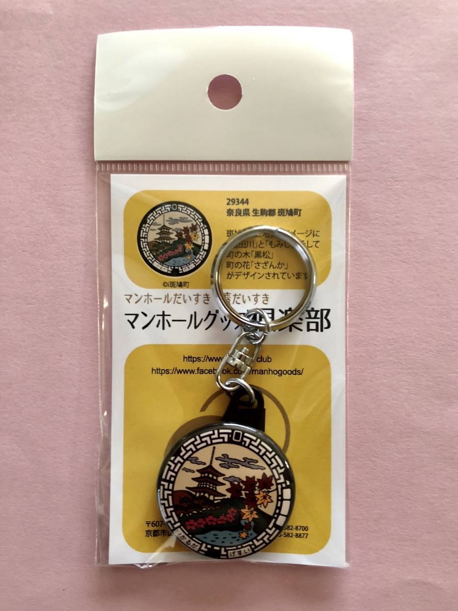 斑鳩の有名な塔のイメージ「三塔」と 在原の業平や能因法師など多くの歌人に詠まれた竜田川と紅葉 町の木:黒松 と 町の花:さざんかがデザインされています