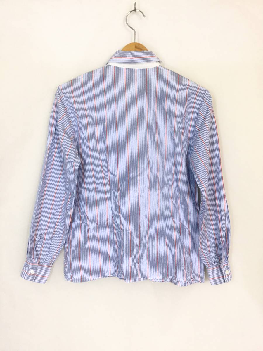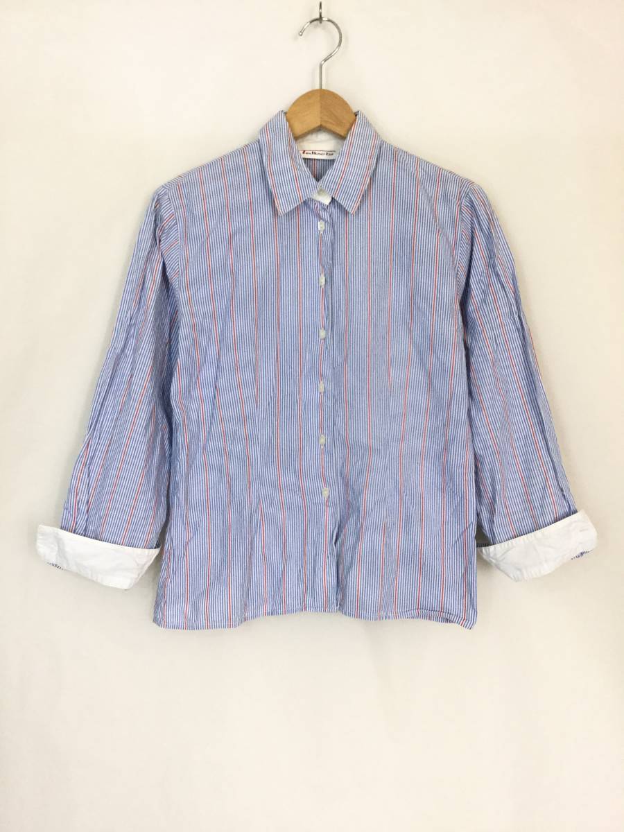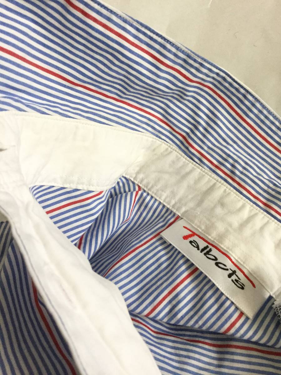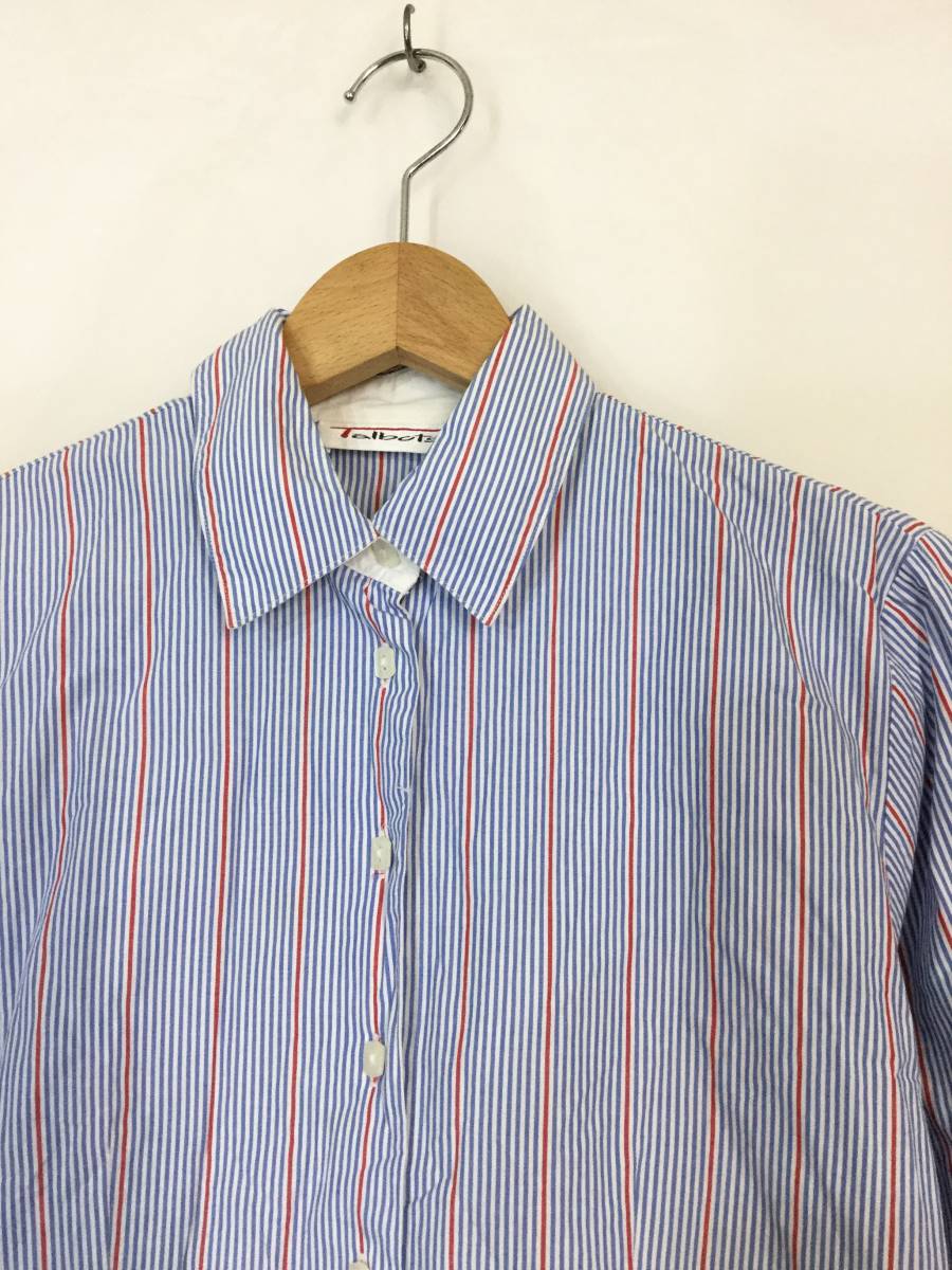 ▼ Talbots タルボット ストライプ 長袖シャツ ブラウス ライトブルー 4P ボックスシャツ レギュラーカラー