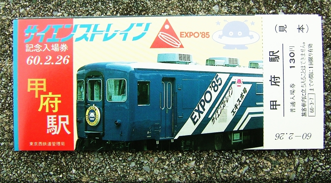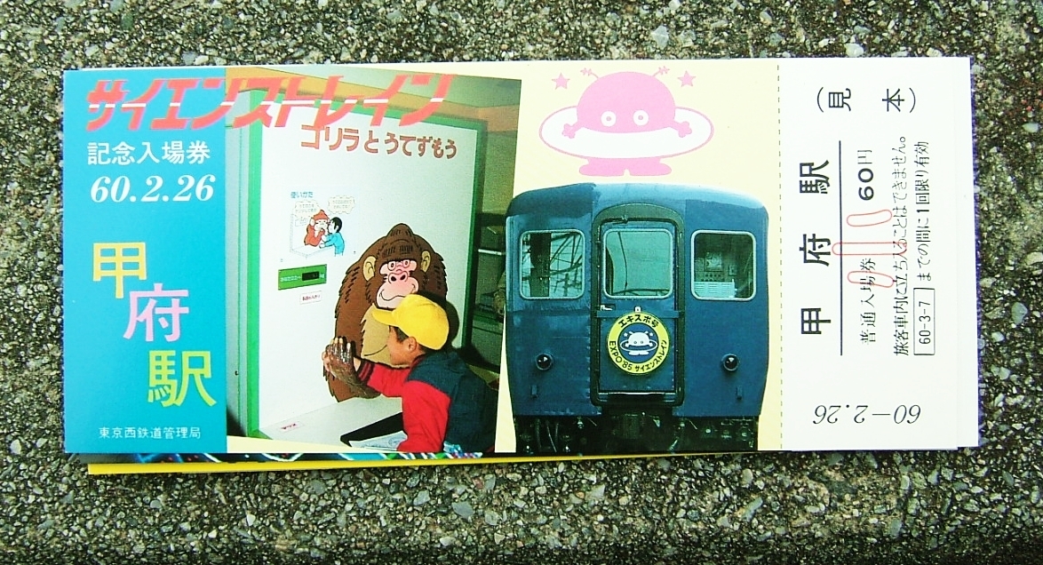 ●見本券●サイエンストレイン記念入場券 甲府駅 60.2.26