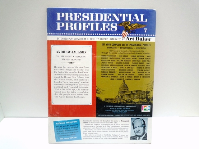 1966年 レコード&コイン 33 1/3 RPM PRESIDENTIAL PROFILES ビンテージ 第7代アメリカ大統領 アンドリュー・ジャクソン デッドストック USA