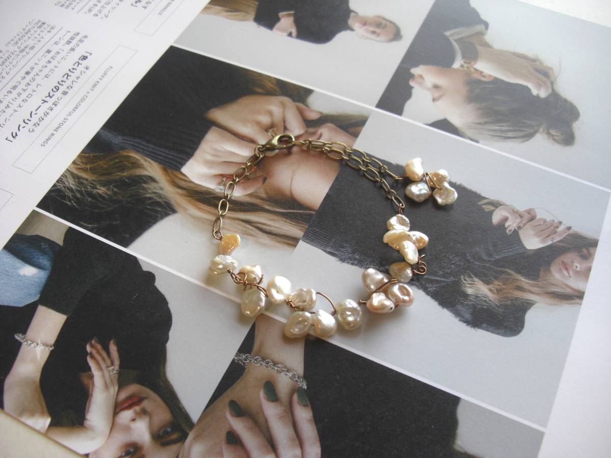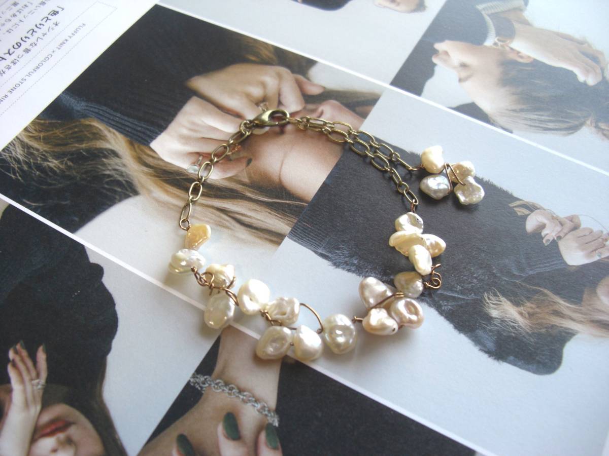 モンローの夢・・シリーズです♪芥子パールを繋いで・・ふんわりやさしいベージュ・ピンクの芥子パールをワイヤーでデザインしてロマンチックなブレスレット です♪8ミリから 9ミリ位の芥子パールを花びらのようにワイヤーで紡いでいます♪長さは全長23センチ位で調節自由です♪お揃いのネックレスやピアスも出品しています♪♪シンプルで飽きのこないいつまでも着けられるデザインを考えて作りました!ハンドメイドをご理解頂いてノークレーム、ノー リターンでお願いします