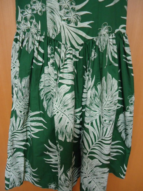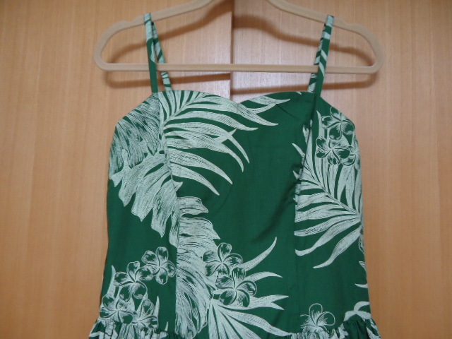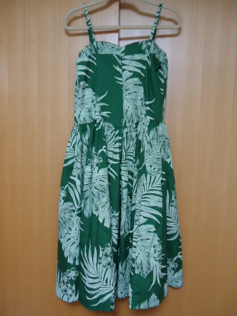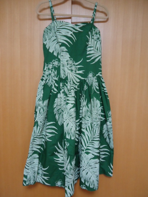 ハワイにて、USED物として、購入しました。C C Fashion社製。コットン35%・ポリエステル65%混合素材。カラーは、グリーン色地に、薄グリーン色花・葉っぱ柄です。ハワイ製。後ろファスナーあります。サイズ表示は、11-12とあります。だいたいXS~Sぐらいですが、平置き実寸を重視して下さい。なお、当商品のサイズ表示は、全てUSAサイズです。なお、少々誤差は、ご了承下さい。肩ヒモ幅約29センチ・身幅(脇の下)約42センチ・丈約111センチです。目立ったダメージありませんが、USED物なので、古着に、ご理解のある方・24時間以内に、お手続き入力後、期限内にかんたん決済、出来る方のみ、ご入札をお願い致します。この商品は、1点物です。 ※※発送方法・送料は、レターパックライト郵便(追跡可能・補償無し)ですと、430円又は、レターパックプラス郵便(追跡可能・手渡し配達・補償無し)ですと、600円又は、ゆうパック送料着払い便(持ち込み割引有り・追跡可能・手渡し配達・補償有り・かんたん決済時は、送料0円ですが、送料のみ到着時支払い)です。※※ ☆★★★★★☆送料は、変わりますが、何点でも、同梱包可能です。数点落札されましたら、まとめて取引を、選択お願いします。☆★★★★★☆