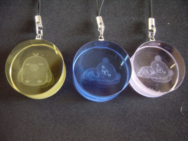 シャーレ型 1.リラックマ(ブルー) 2.コリラックマ(ピンク) 3.キイロイトリ(イエロー) ◇3Dアートクリスタルがストラップ仕様で登場! |