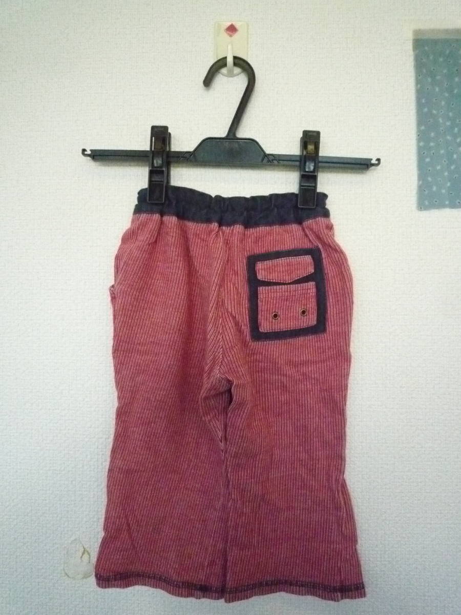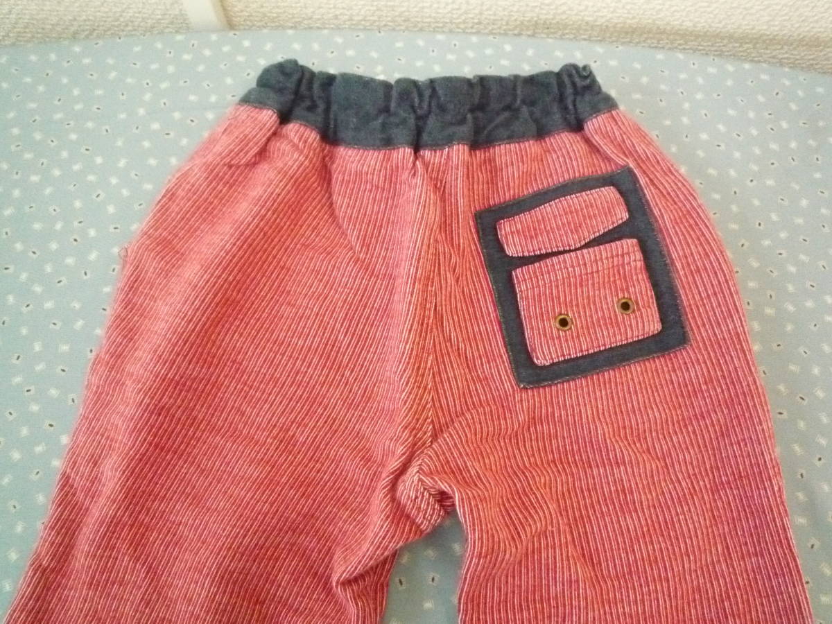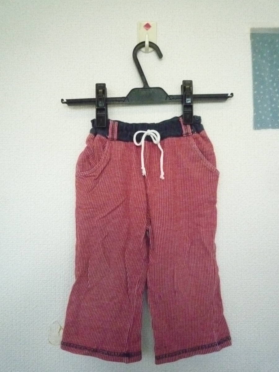 ★CROISSANCE BEBE ベビーリラックスパンツ ウエストゴム 長ズボン ストライプ 赤系 サイズ90