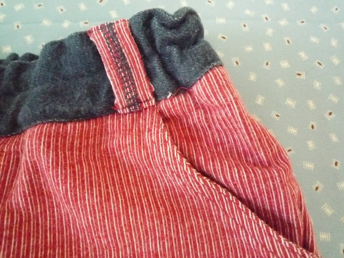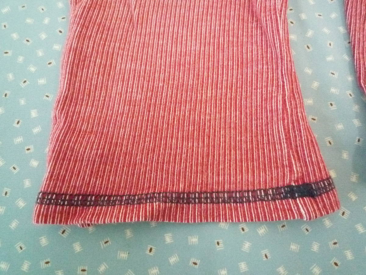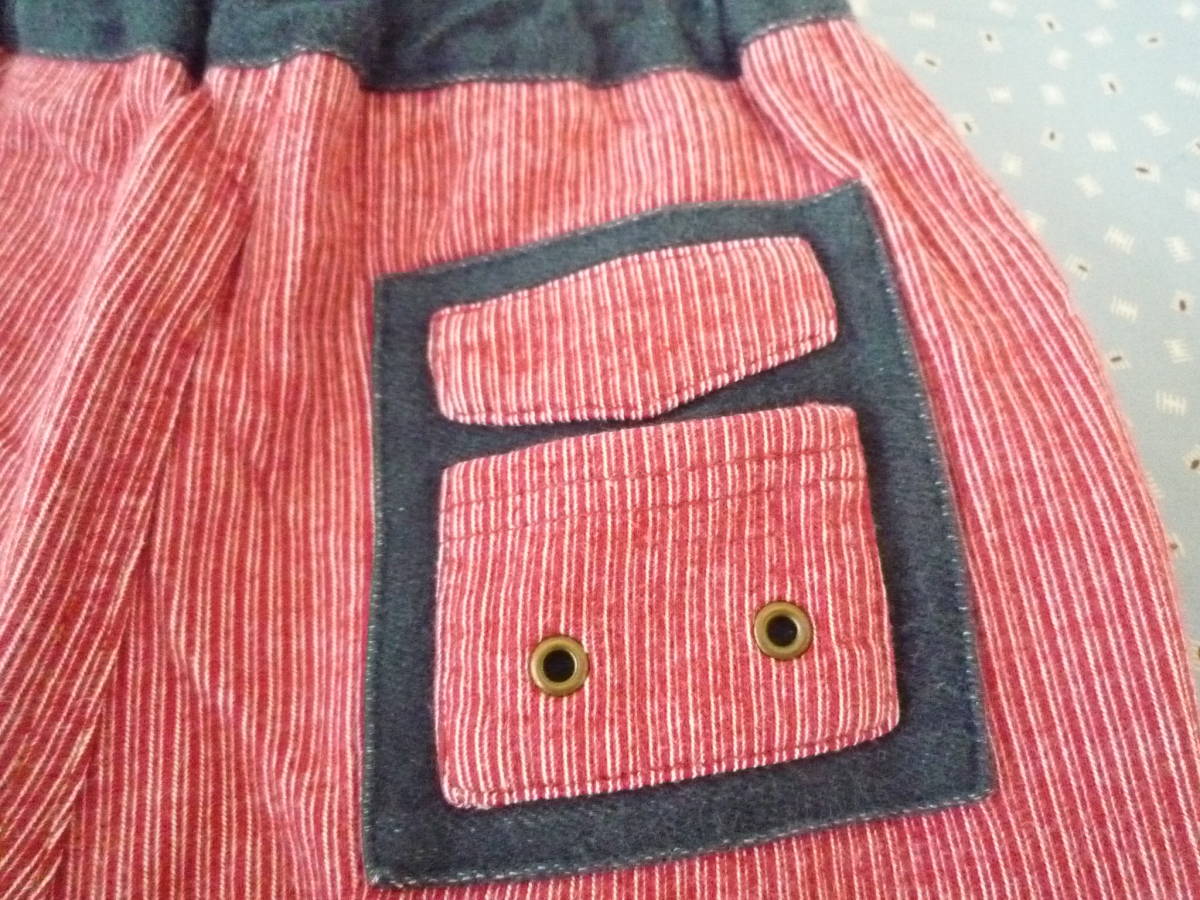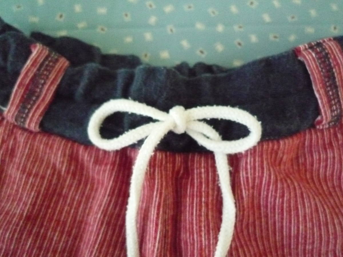 ★CROISSANCE BEBE ベビーリラックスパンツ ウエストゴム 長ズボン ストライプ 赤系 サイズ90