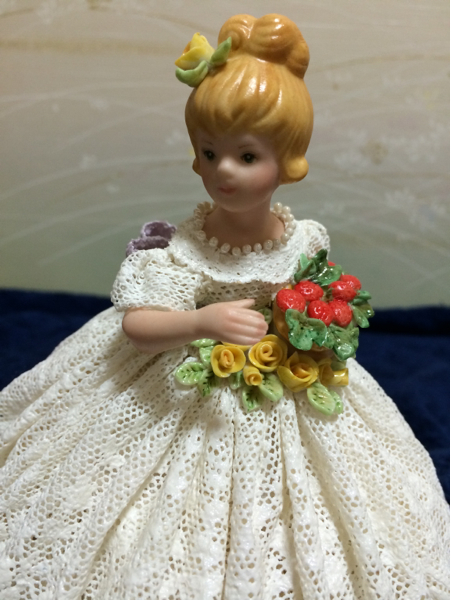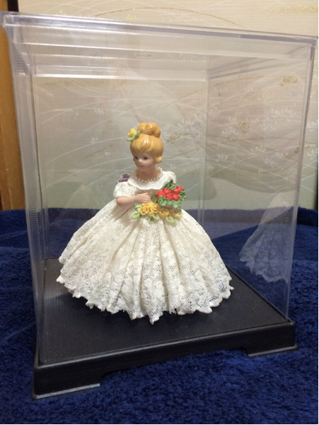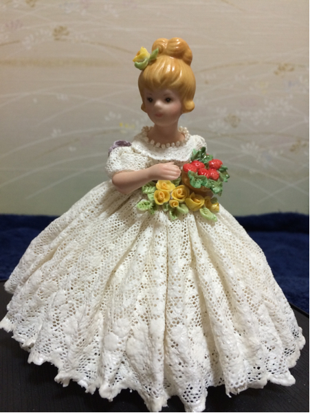 | とても素晴らしい、手作りの陶製レース柄衣装の、プリンセス人形(高さ約13cm)・ケース入(約18×18×21cm)、となります! 完品ではありませんので詳細はご了承ください! お気に召した方は是非いかがですか?他にもいろいろと出品しておりますので、そちらもご覧ください! |