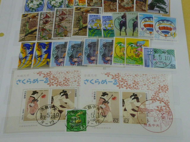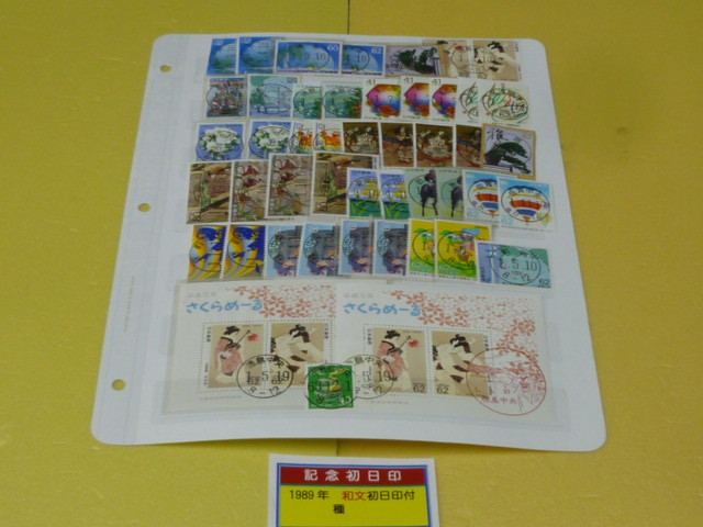 19 日本切手№69 1989年 記念 和文初日印付 局違・タイプ違含 計53枚+小型シート2種 糊付