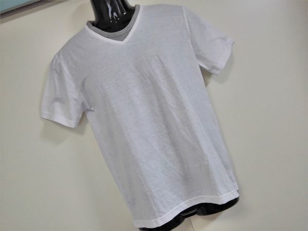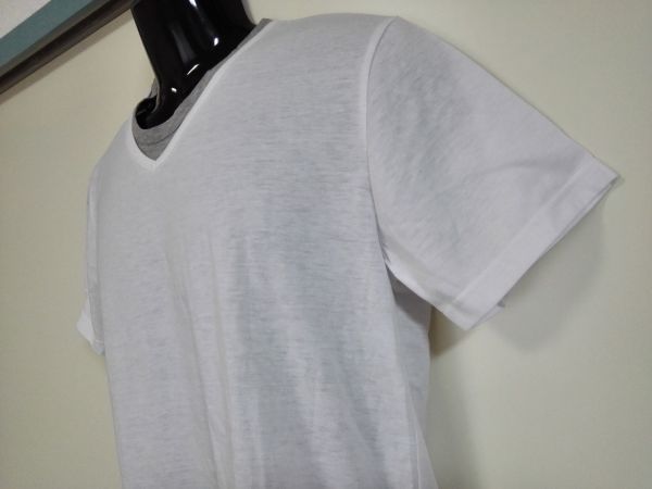 kkyj1626 ■ Velocette ■ Tシャツ トップス カットソー 半袖 レイヤード風 重ね着風 白 M