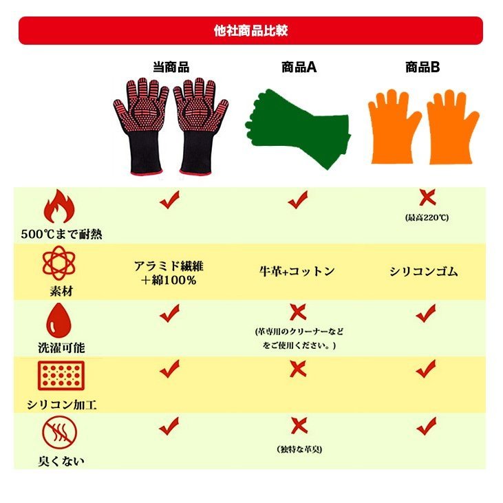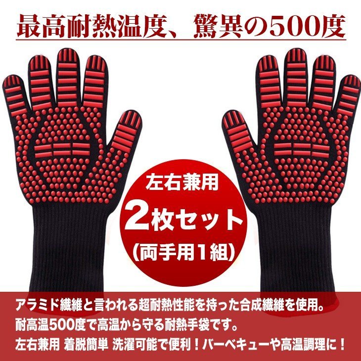 耐熱グローブ 最高耐熱温度500度 シリコン加工 2枚セット
