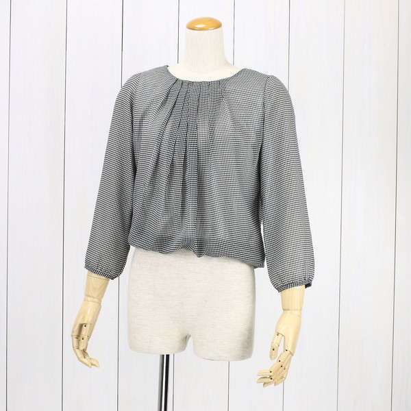 【送料無料・即決価格】ミッシェルクラン MICHEL KLEIN 千鳥格子柄 とろみカットソー グレー 38 M