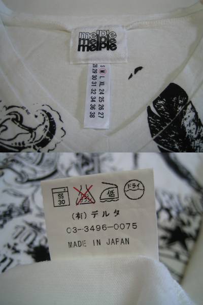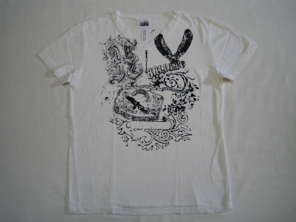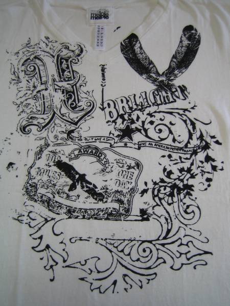 melple メイプル 柄プリントVネックTシャツ ホワイト