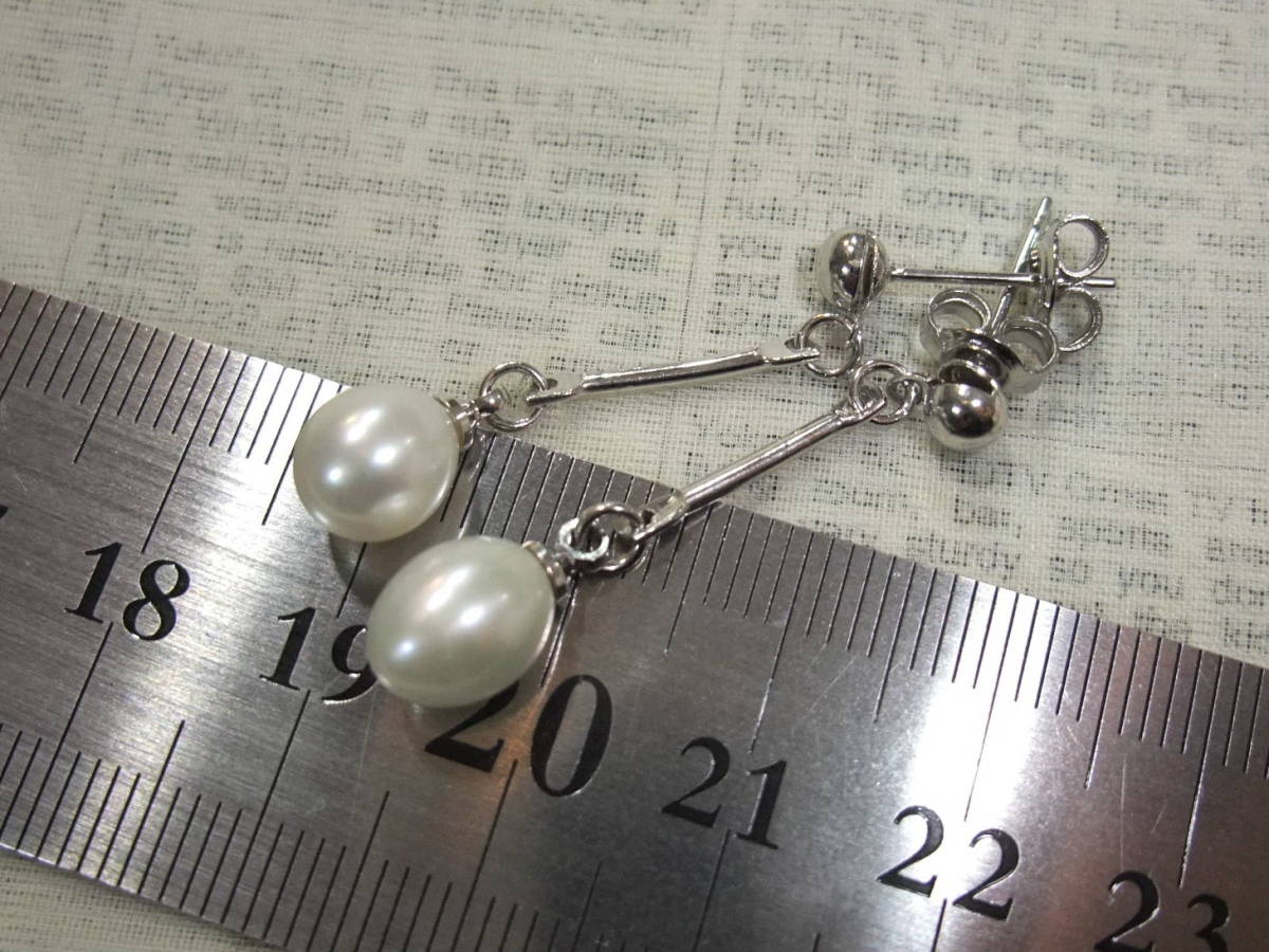 高品質♪テリツヤ綺麗な純白真珠の下がるタイプピアスシンプル♪テリツヤ綺麗な淡水真珠のルースを使用 401-9