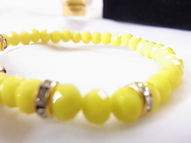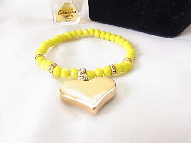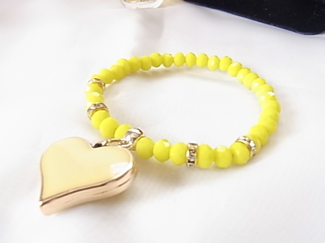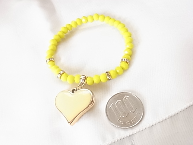 元気なイメージの黄色のビーズストーンにハートのチャーム付き 伸縮性ブレスレット③◎◎