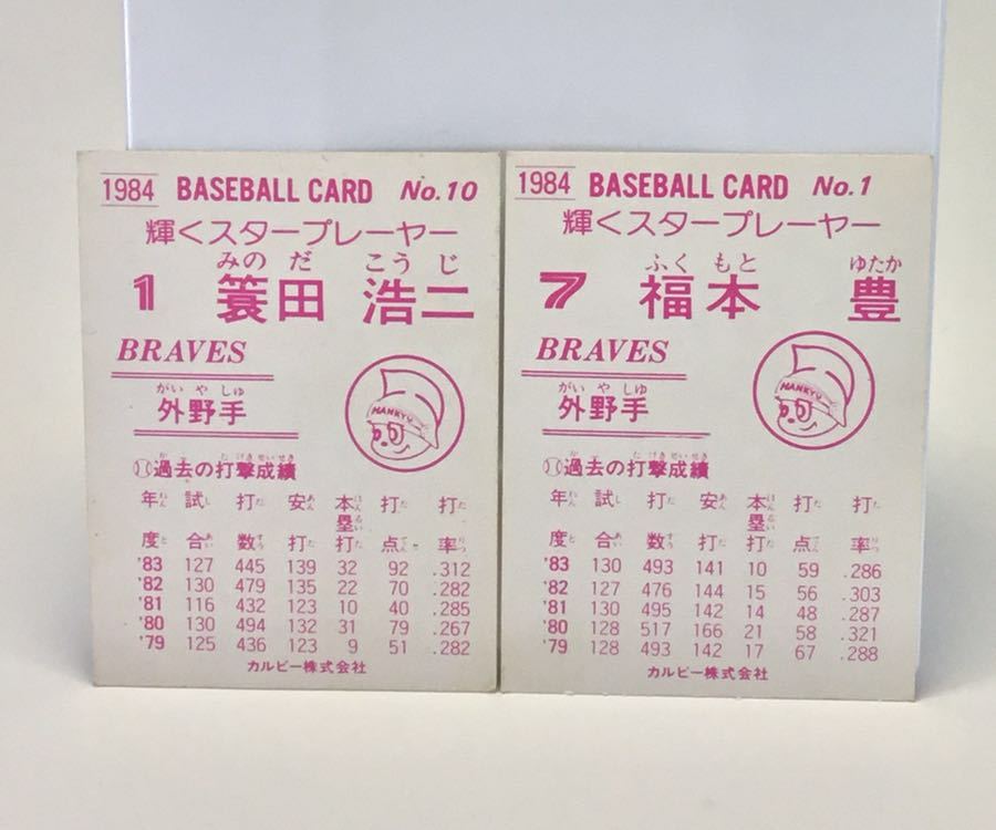 ★ 商品名 ★ カルビー プロ野球カード 1984 No.10簑田 No.1福本 管理0021 |