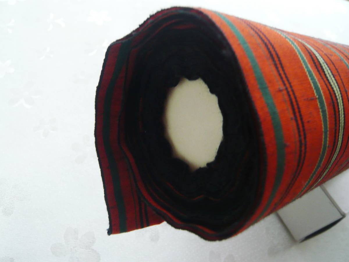 | ★ 商品名 *未使用美品★反物★ホームコート 羽織 生地★約40cm×570cm 朱色 縞柄★ポリエステル&絹 ★昭和レトロ★3148 |