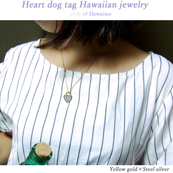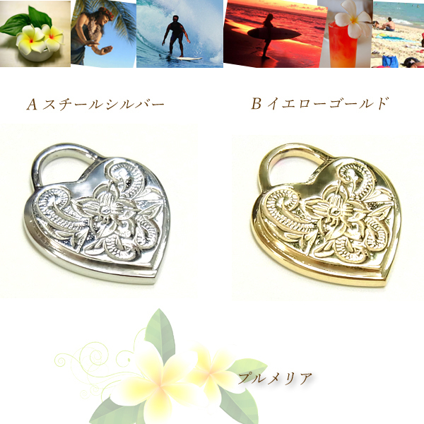 ★人気★贈り物★ハワイアンジュエリー★金属アレルギー&温泉&海水浴OK★ステンレスペンダント★ハートプルメリアカレイキニプレート★