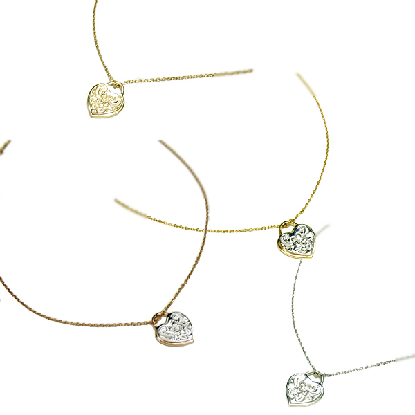 ハートプレートのセンターにはプルメリアの花びらがデザインされてます