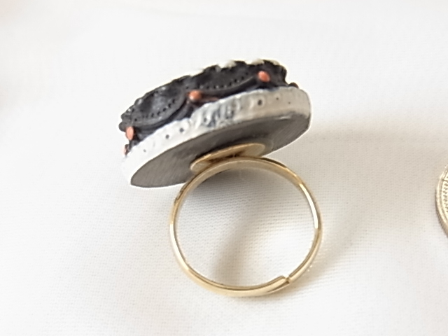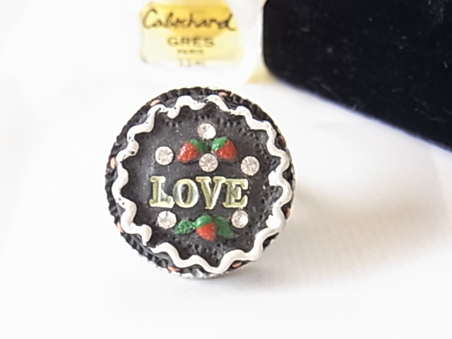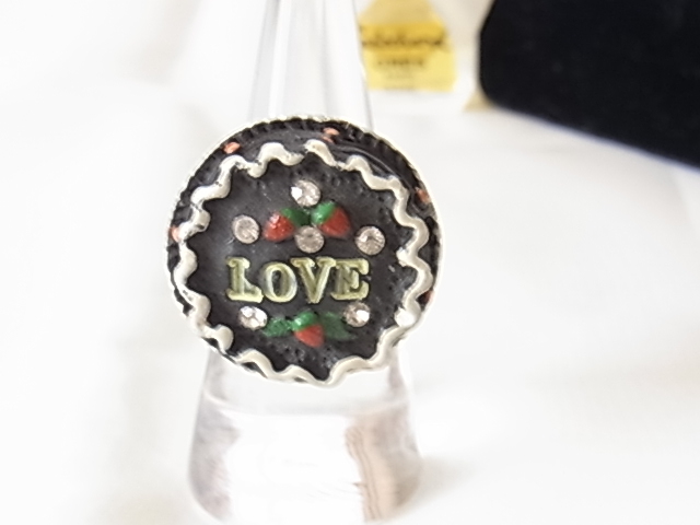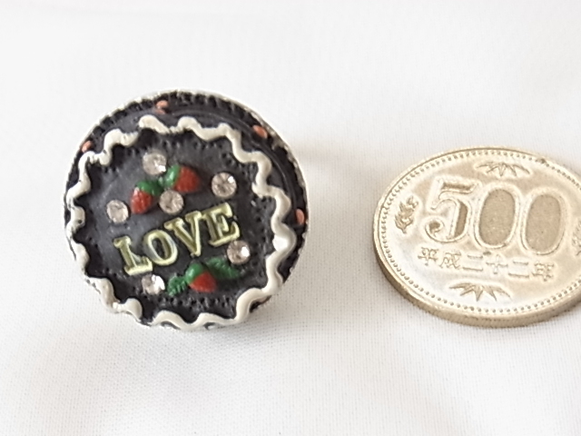 可愛くて美味しそうなチョコレートのデコレーションケーキ型 LOVEの文字と苺 イチゴが可愛い 直径約3センチ フリーサイズリング 指輪