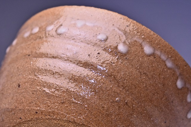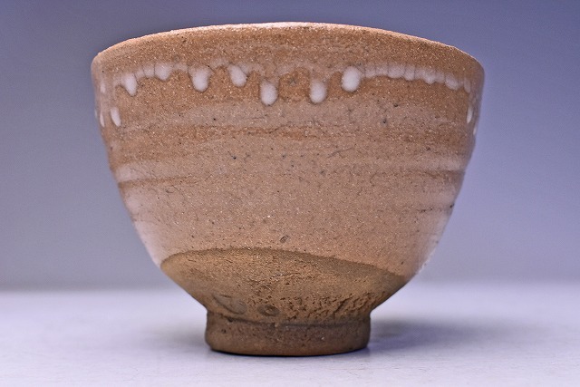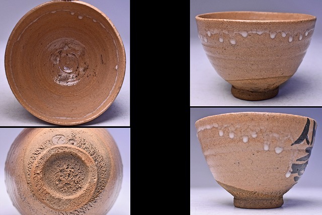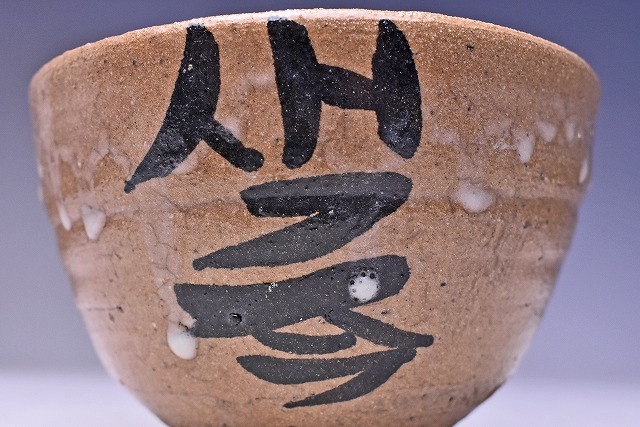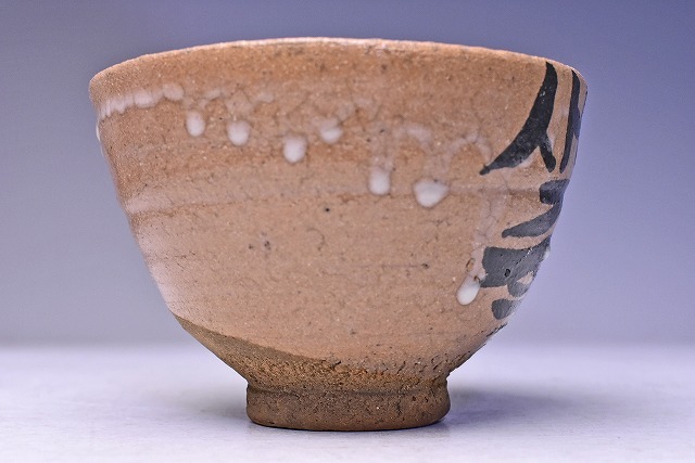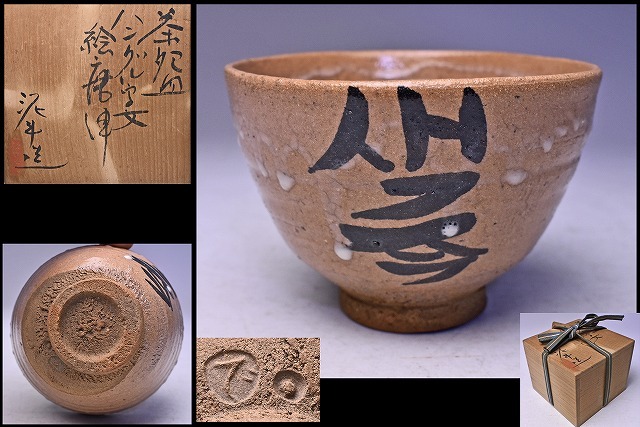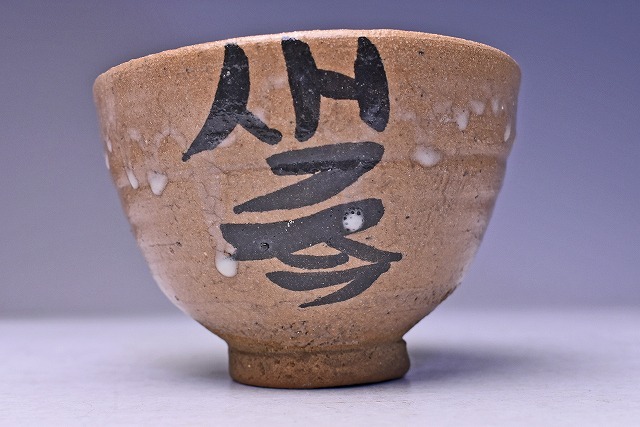 名工 杉本泥牛 氏の 作品です。 枇杷肌や 高台の 造形など 古唐津 の 奥高麗 を思わせる 意匠に ハングル文字 の 文様が 古格すら 感じさせる 逸品です。
