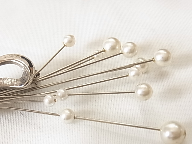 訳あり安価 パール調ビジューストーンが華やか ラインストーンも輝く インパクトのあるゴージャス感 縦約10センチ ブローチ▲