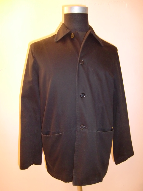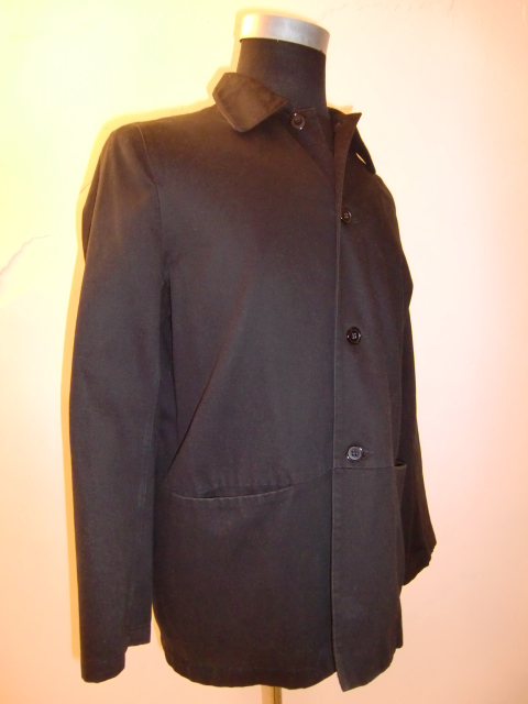送料無料 イタリア製 フライツォーリ FRAIZZOLI コート 48 ワークコート ステンカラーコート ショップコート 黒 コットン HRM