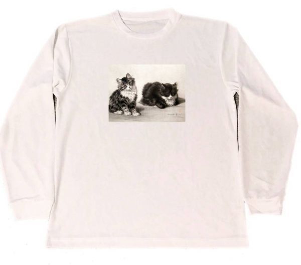 ロナー ドライ Tシャツ 猫 リアル 絵画 グッズ 名画  ロング Tシャツ ロンT 白