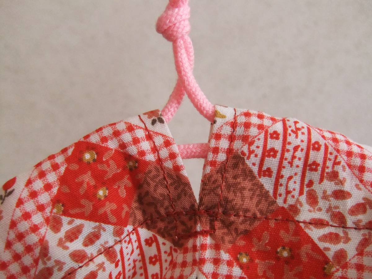 ひもはピンク、両側から引っ張るタイプです。洗濯後も早く乾くように、1枚仕立てで内布はありません。