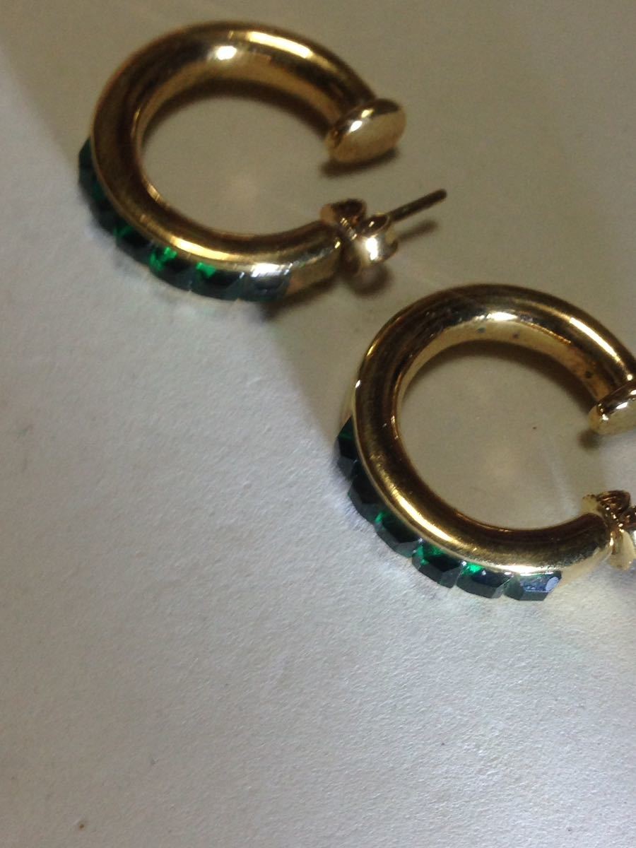 グリーンガラスの美しいピアスです、ピアスの幅は4ミリです