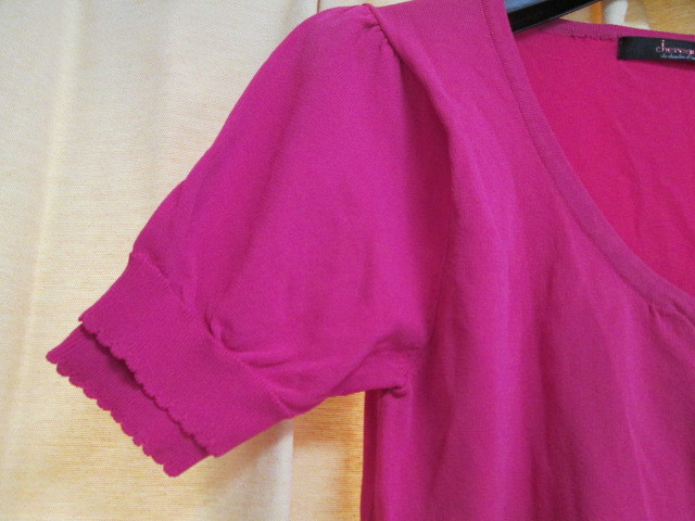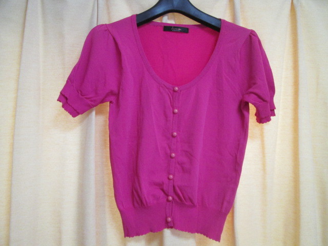 新品未使用★chereaux ビビットピンクの半袖カーディ サイズ38(M) | |||