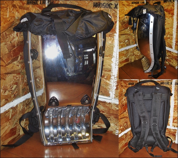 ・ハードシェルのバックパックです。バイクや自転車の転倒でも衝撃から体を守れるよう作られています。